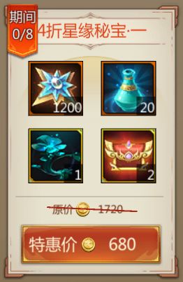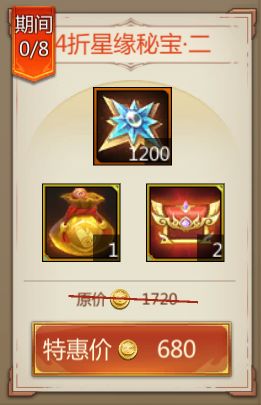 礼包内含星缘*1200、精炼大礼包*1、周年甄选礼盒*2,原价1720梦三币,现价仅需680梦三币,活动期间限购8次。