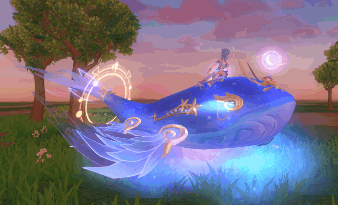 待机时候鲲鲲的额头会多出一个小月亮的特效身下也有星球云彩的特效不过行走时星球特效会消失