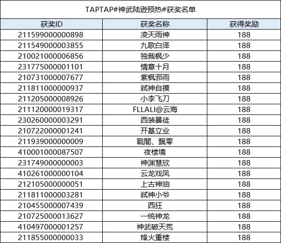 恭喜以下主公获得本次活动奖励,奖励会在7个工作日内发布到对应的ID邮箱内,请注意查收