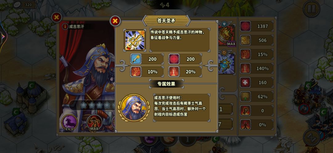 值得注意的是:士气高昂的成吉思汗使用一技能并不会触发额外伤害效果,bug?其它的主动神器并不会影响。