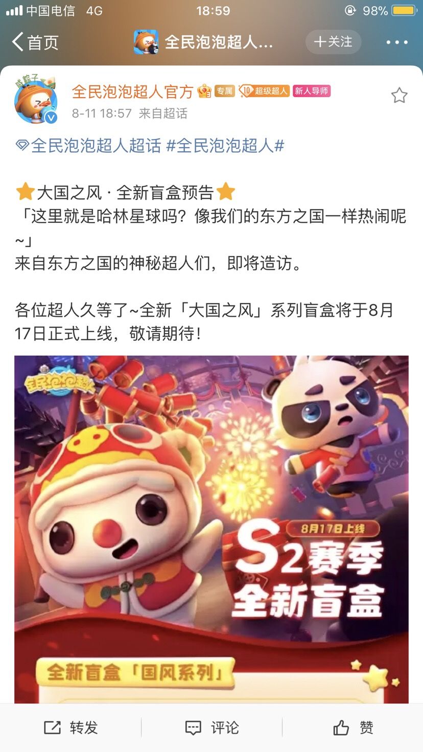 8月17号 下周三 大国之风盲盒池登场