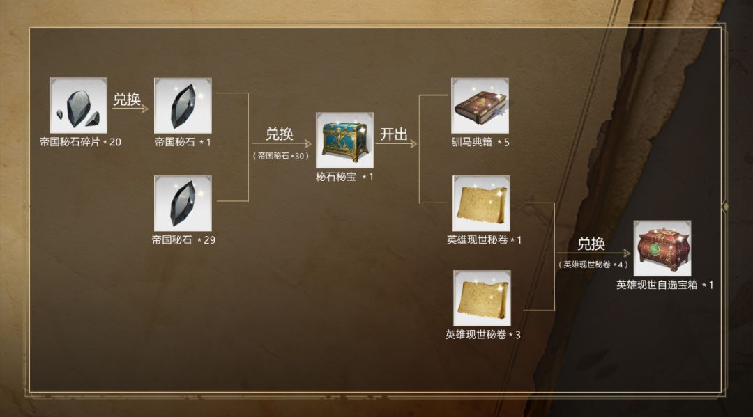 活动简介:1、2022年8月12日11:00开始,当领主集齐20个帝国秘石碎片后,即可合成帝国秘石*1,每30个帝国秘石可以在活动中心中兑换秘石秘宝*1,内含驯马典籍*5和英雄现世秘卷*1: