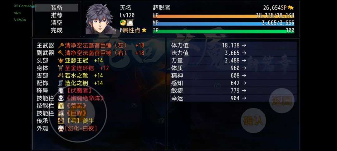 第八幕没有做隐藏拿到双锤的朋友,第七幕隐藏任务给的自作无名减伤非常好用(没有自作无名需要不停地打高级绷带)。烈阳手套的被动技能弥补全能主普通攻击没多少攻击的劣势。