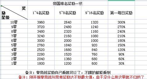 备注:刚开服皇帝战与帝候奖励达不到最大值,由于没什么用这里就不归纳了