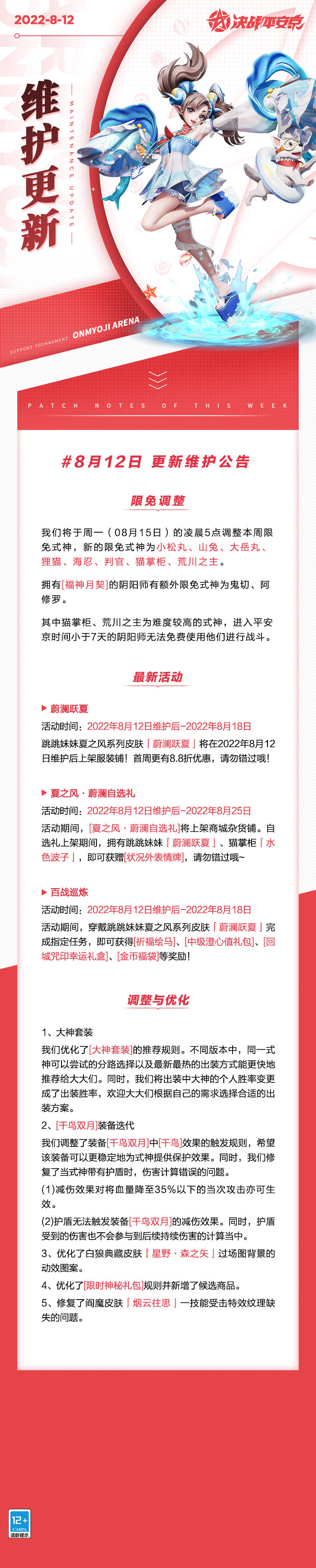 樱子现奉上《决战!平安京》8月12日的维护公告。