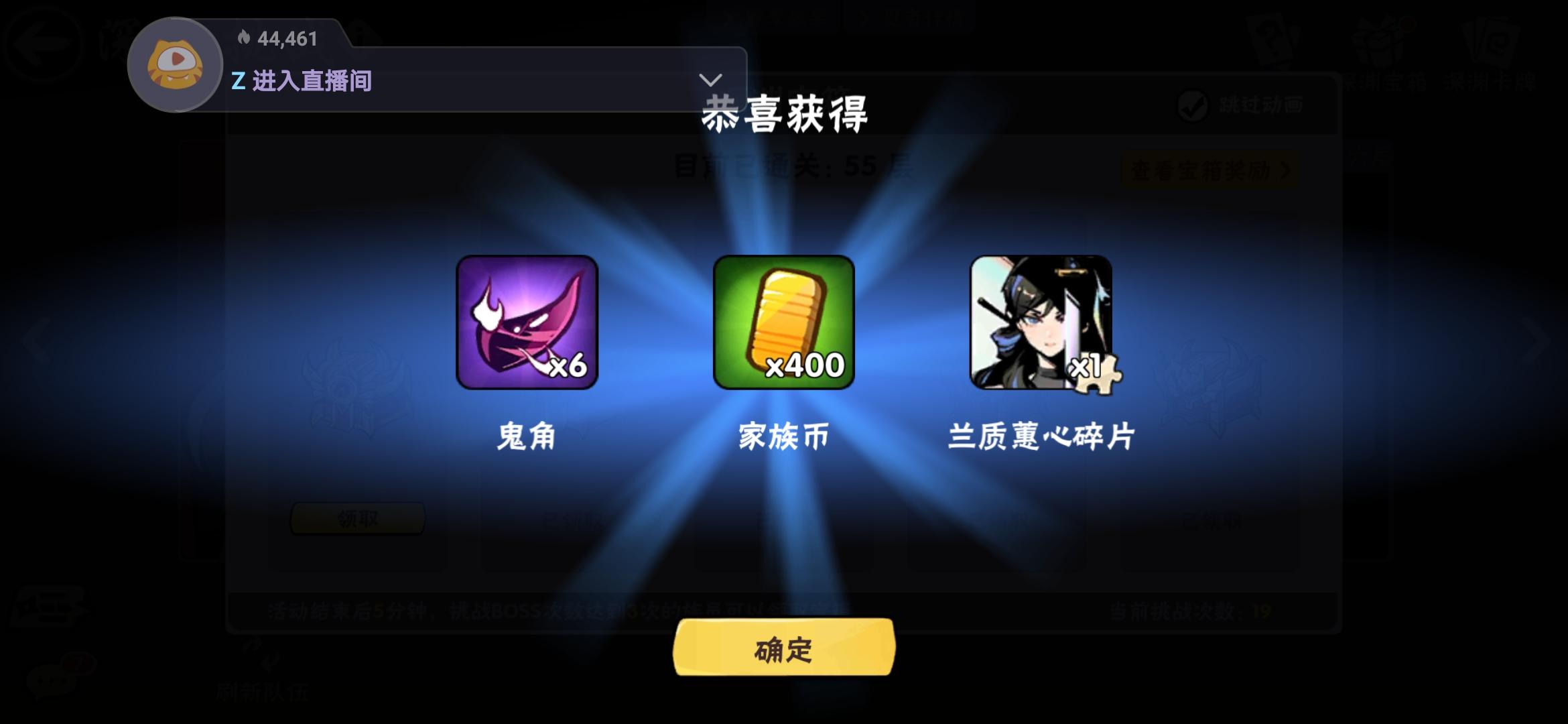 呱唧呱唧,非深渊家族🌸花凉🌸上周抵达56层!喜提两个金箱!