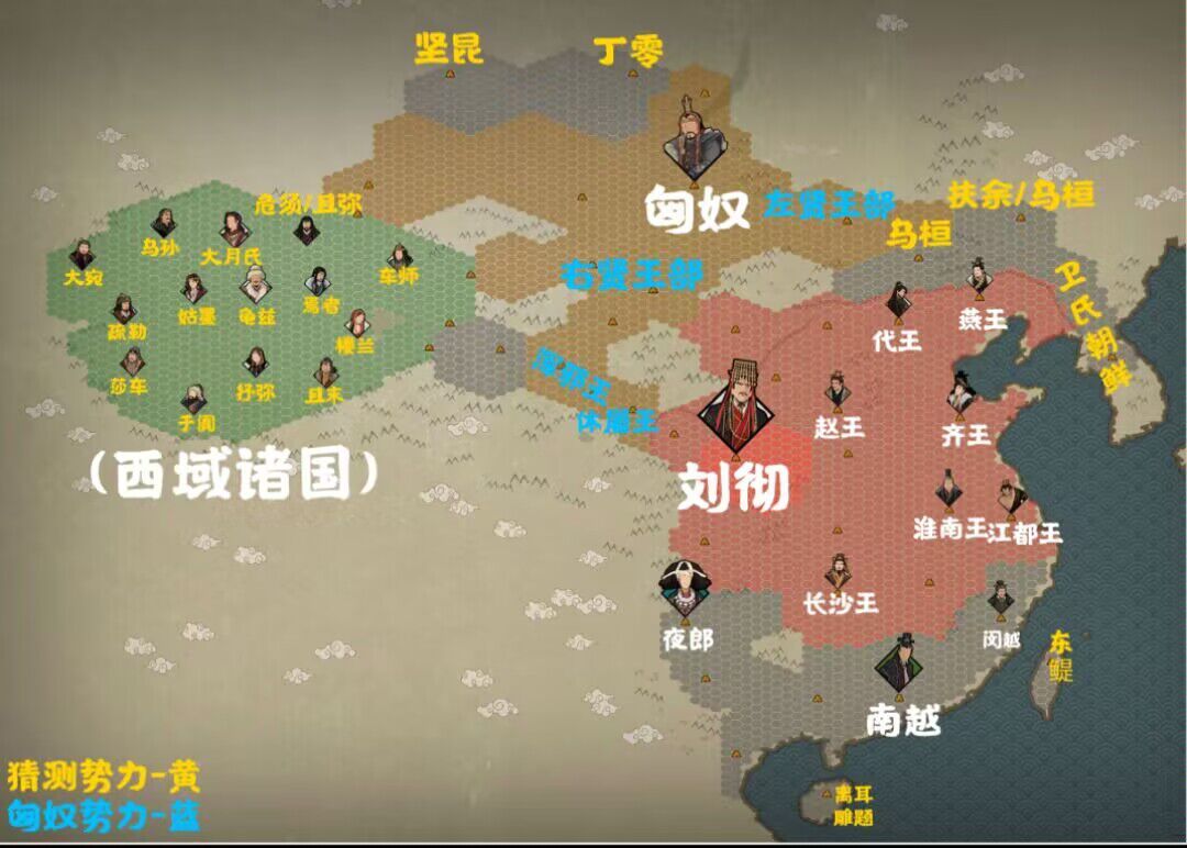 包括南越,夜郎,闽越。按理来说,乌桓和卫氏朝鲜应该也算一股势力,但是却没有君主头像,不知道是不是还没画出来。