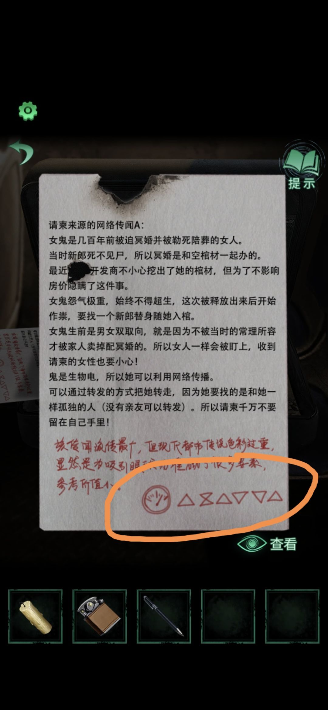 变换字的顺序打开箱子,点击高跟鞋,纸人捂住高跟鞋,按顺序点纸人手指