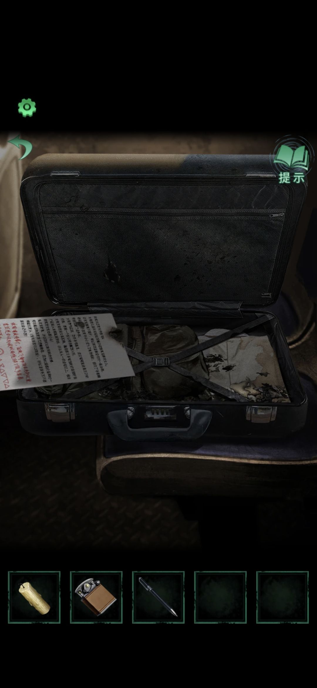 打开箱子,拾取打火机,看纸上消息,拾取红色圆珠笔