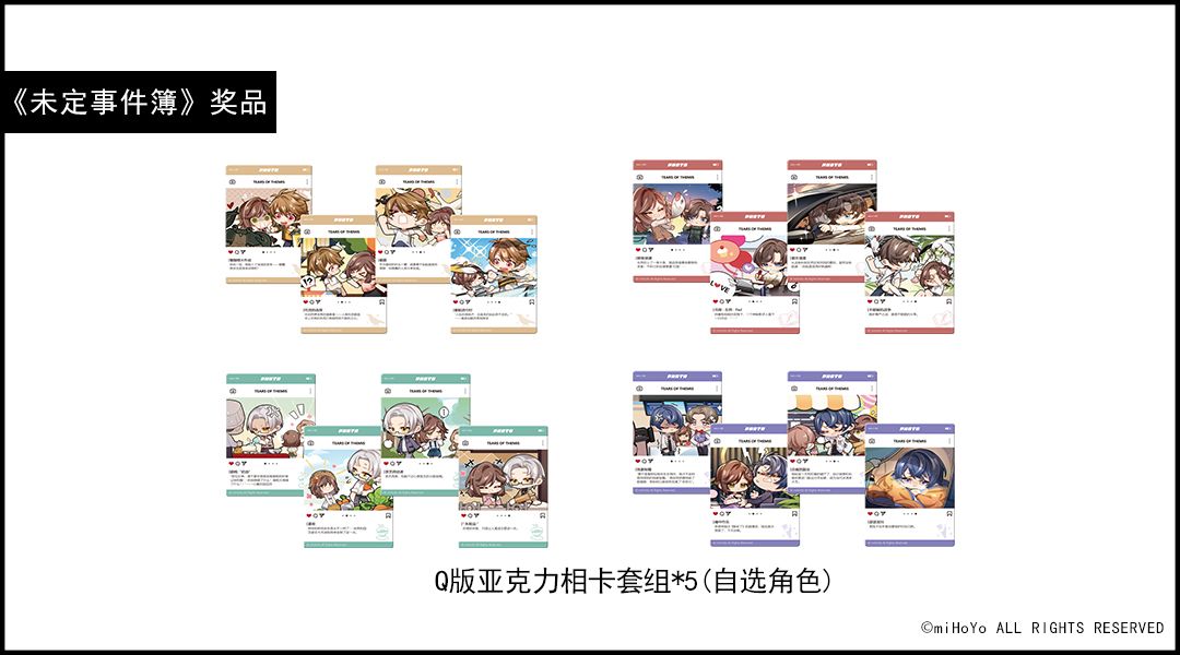 我们将抽取5位参与活动的律师,为这5位律师每位送出珍藏系列 Q版亚克力相卡套组一个(自选角色)!