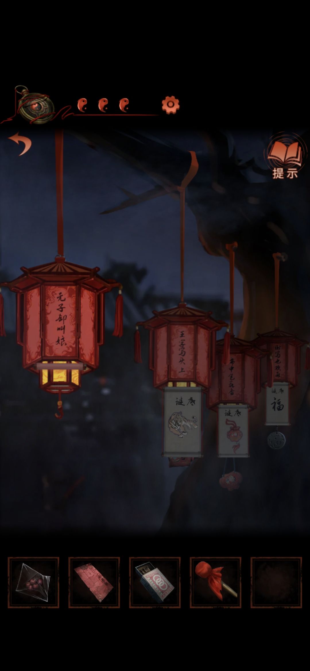 2. 中间场景,点击四个灯谜,点击第一个灯笼,获得[火柴]