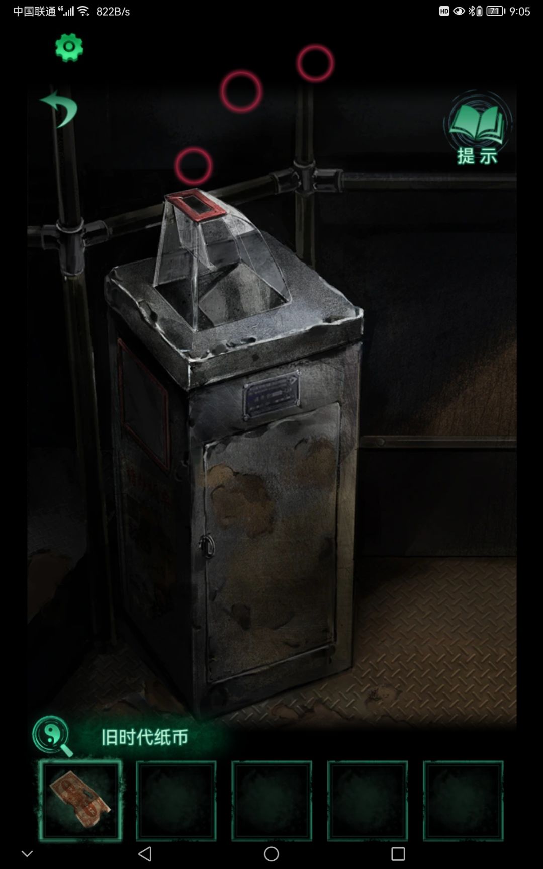 这里可以看出需要钱我们在之前打开电子屏的时候往售票箱里扔过一张钱一会要想办法打开那个生锈的售票箱然后往门边的凳子上看