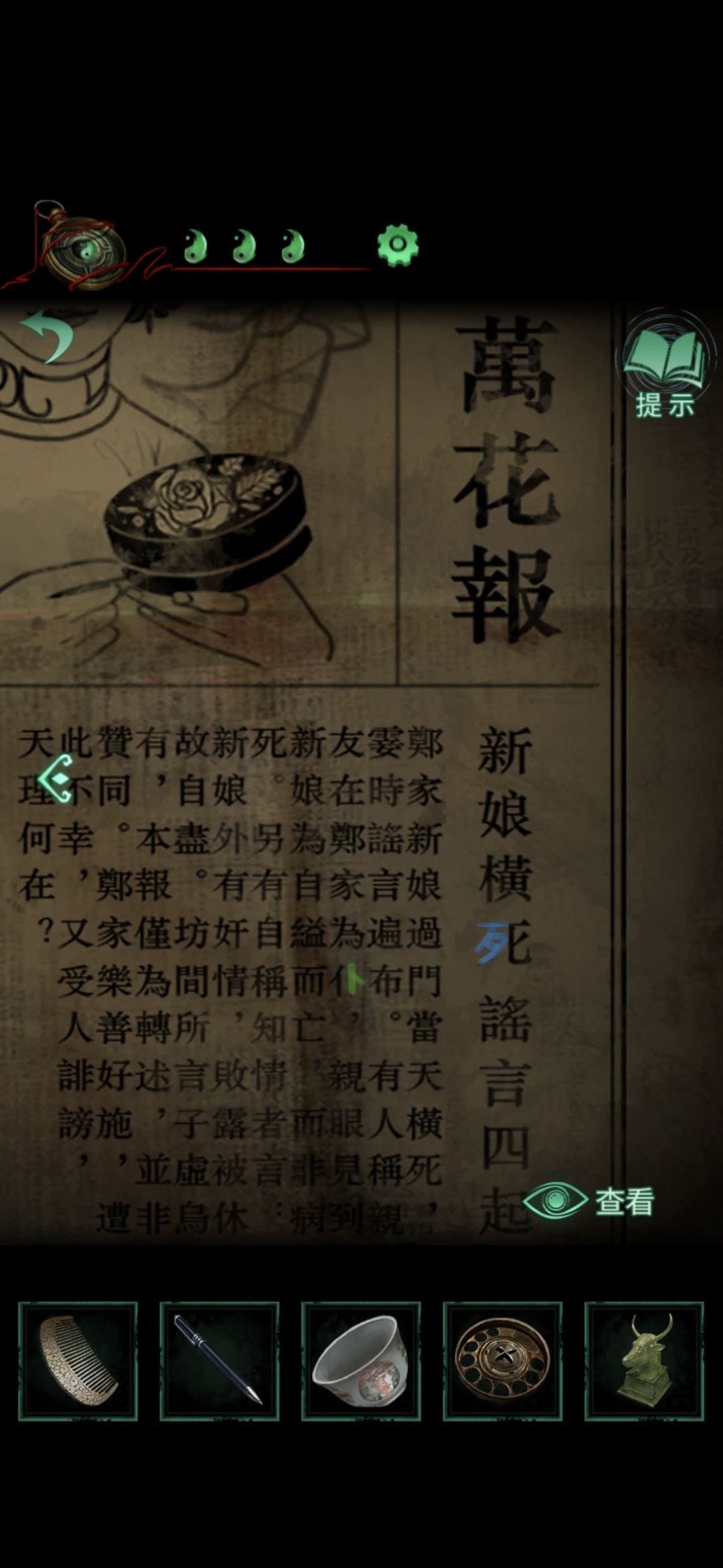 3. 左侧场景 点左下轿子,过剧情 获得[化妆盒]和[梳子]