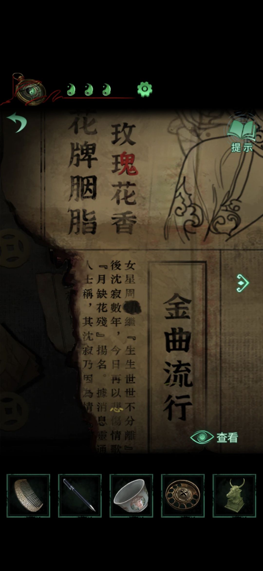 点击旁边纸人棺,获得[修眉刀],到中央院子,点击中间花坛,用修眉刀 获得[一朵花]