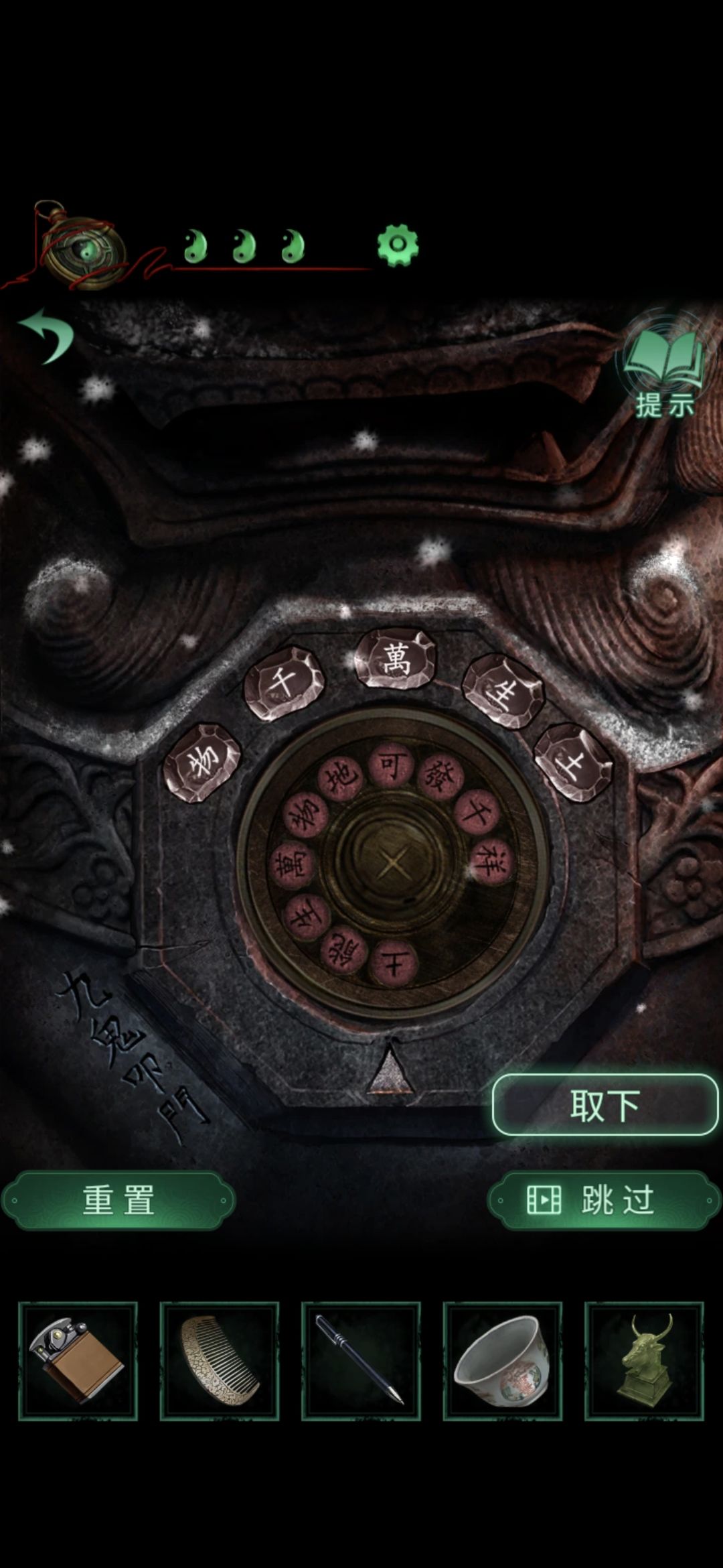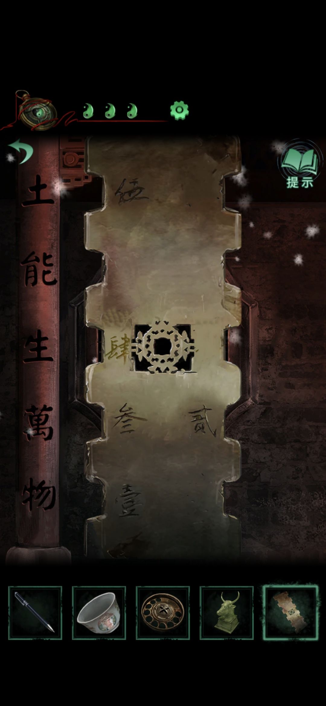 [拨号盘外壳]放石雕(右)处,按顺序转动 [物 千 万 生 土] ,获得[钥匙]