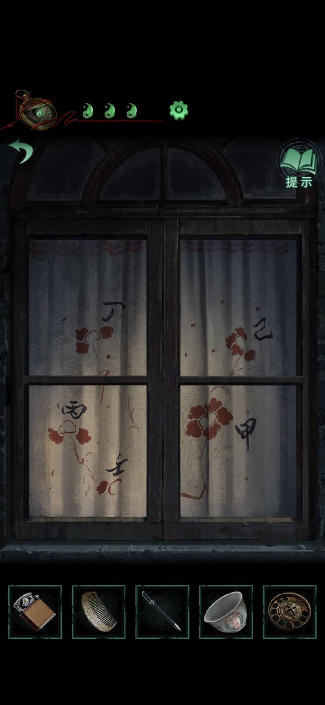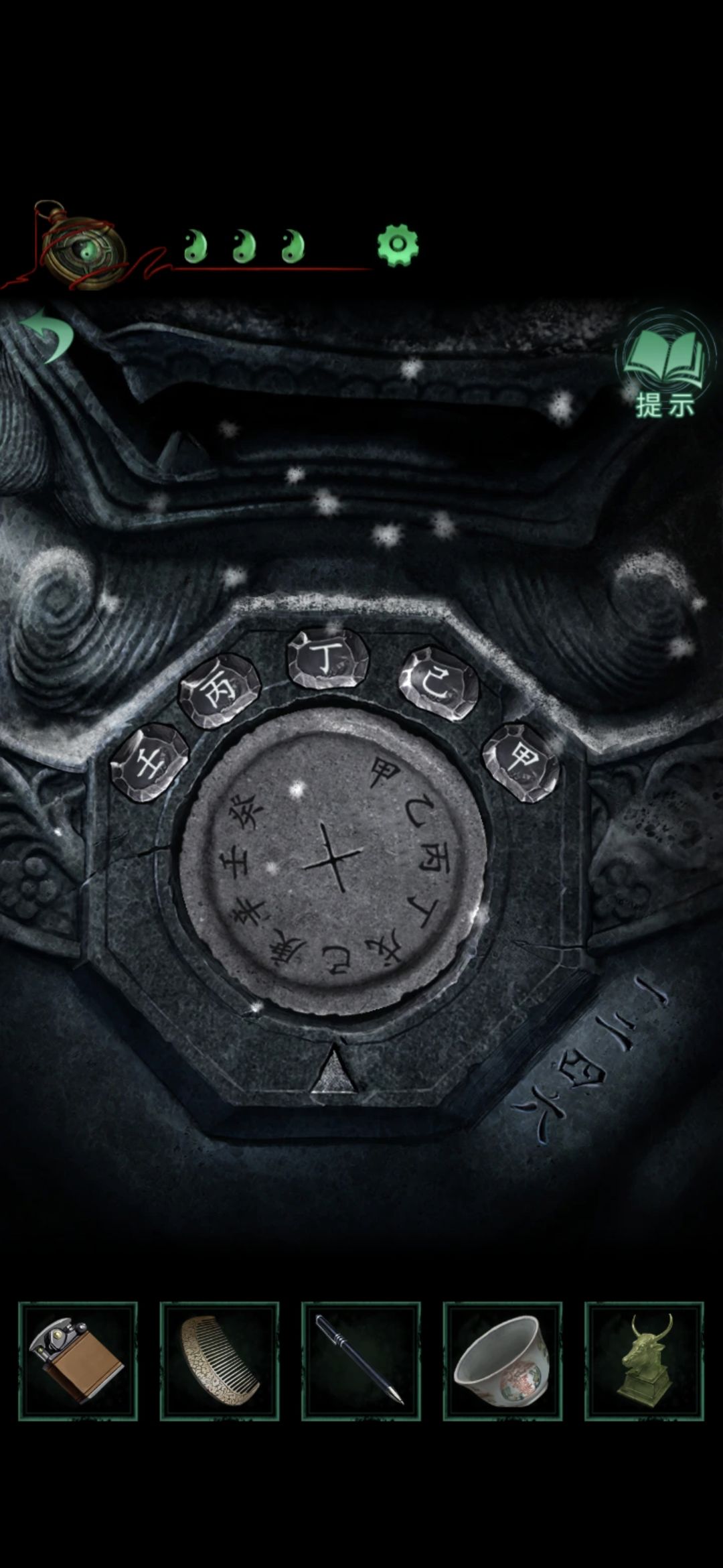 [拨号盘]放在大门口石雕(左),按顺序转动 [壬 丙 丁 己 甲] ,获得[钥匙]