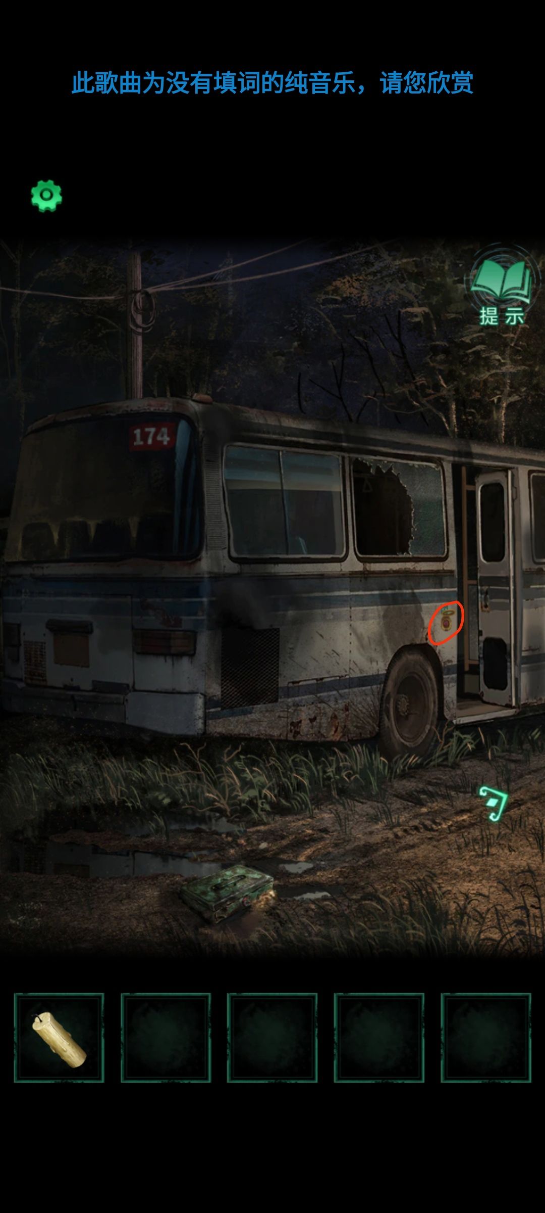 根据纸条右下角线索,来到司机位置,在油表右边有几个按钮,顺序分别是:上中上下下上,即可打开公交车灯。