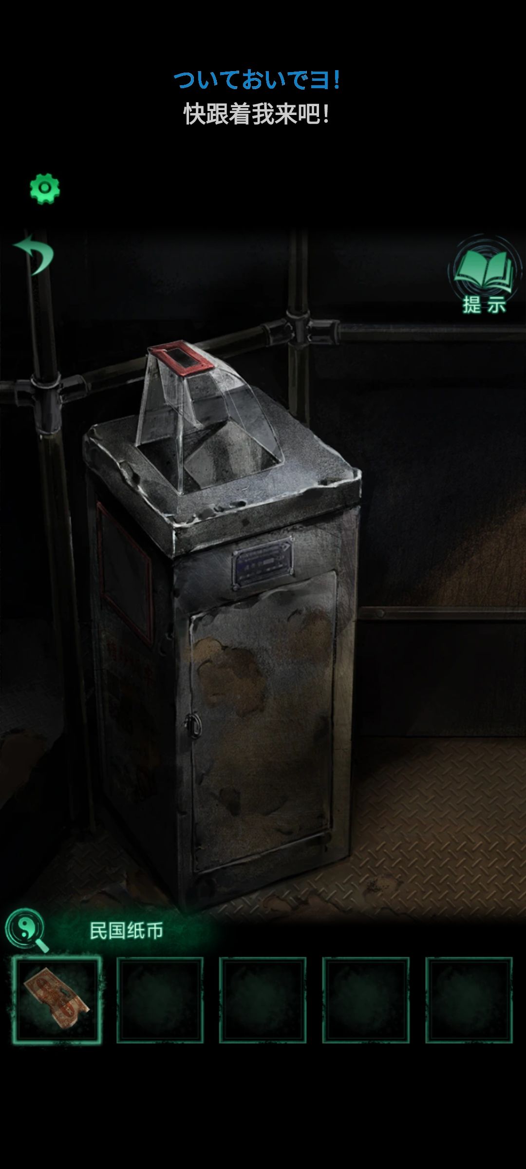我们在公交车上会捡到一张纸币,投进投币箱里,这个时候LED显示屏会亮,将后半段文字输入到女纸人乘客的密码箱里。