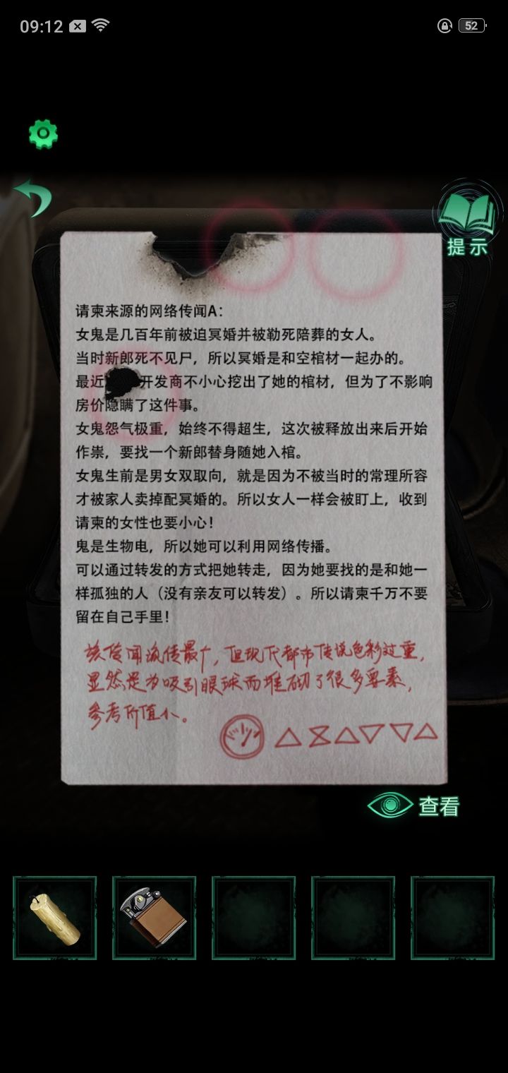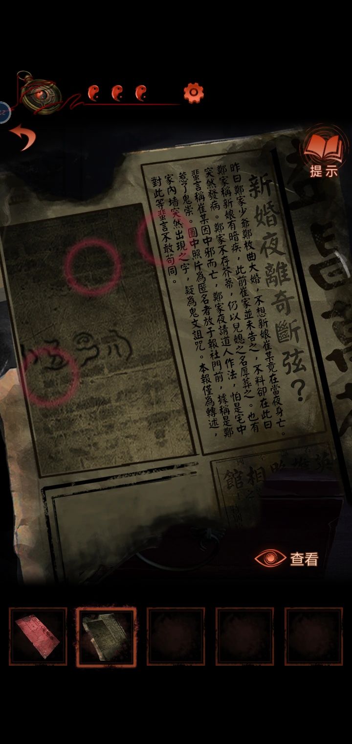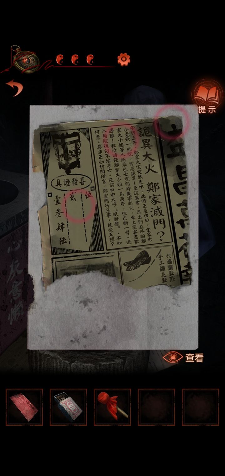 15.敲锣4下回到场景1,把红绳给女木偶,得到新娘木偶,挂第一个灯谜上得到一张报纸