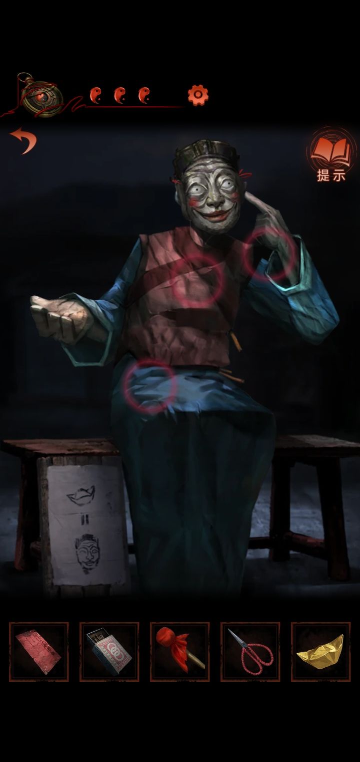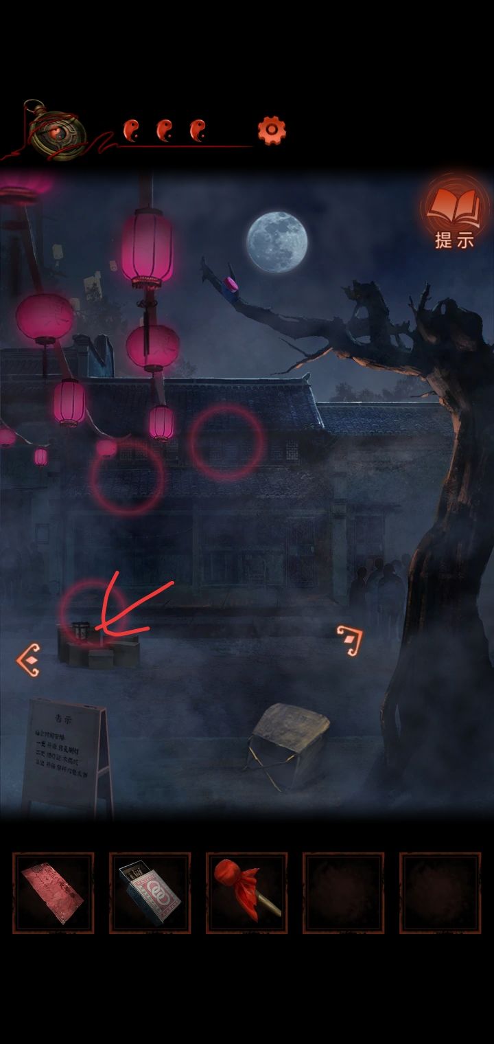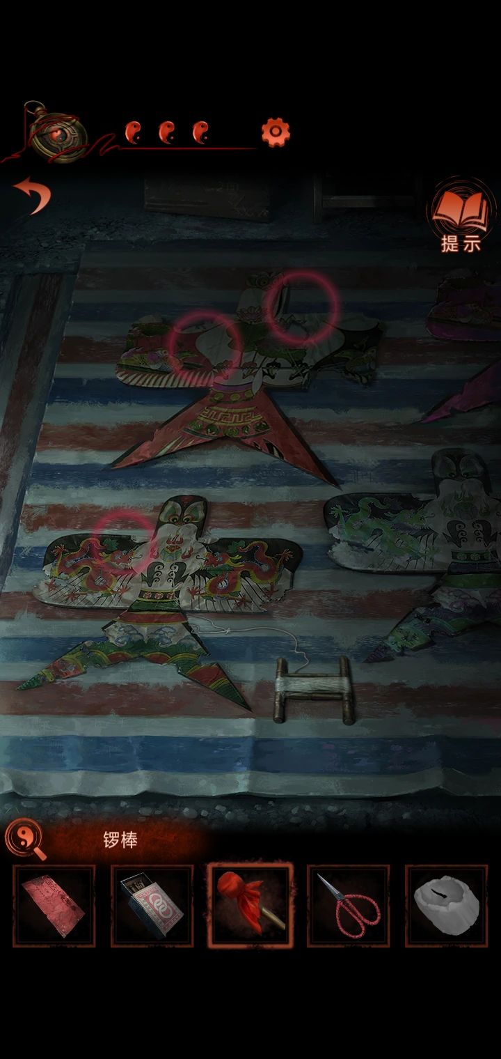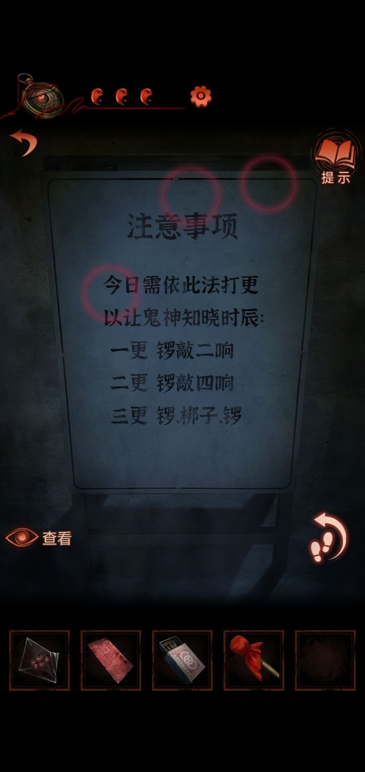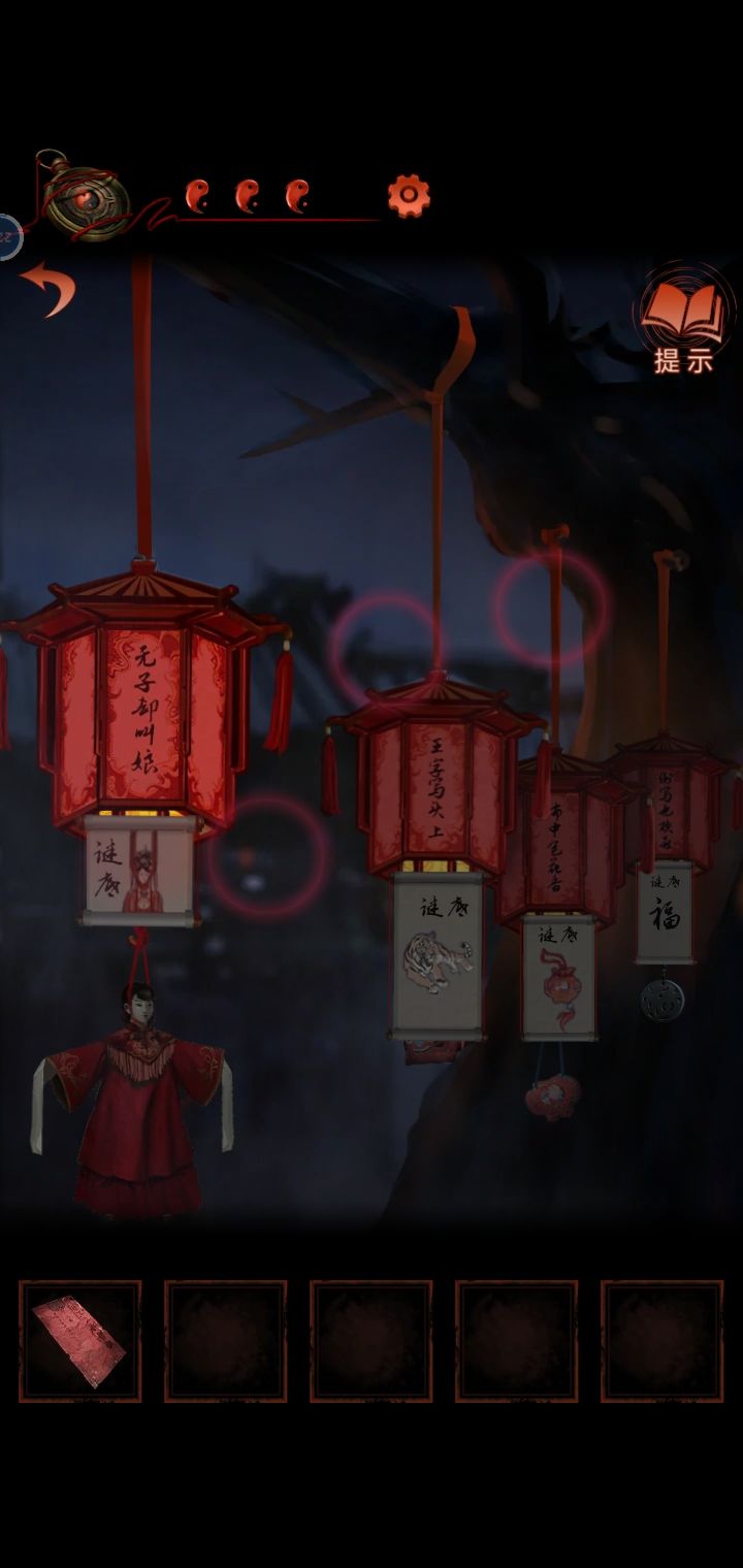 4.猜灯谜,从纸人手里得到锣棒,根据木牌提示敲锣,敲两下转换场景