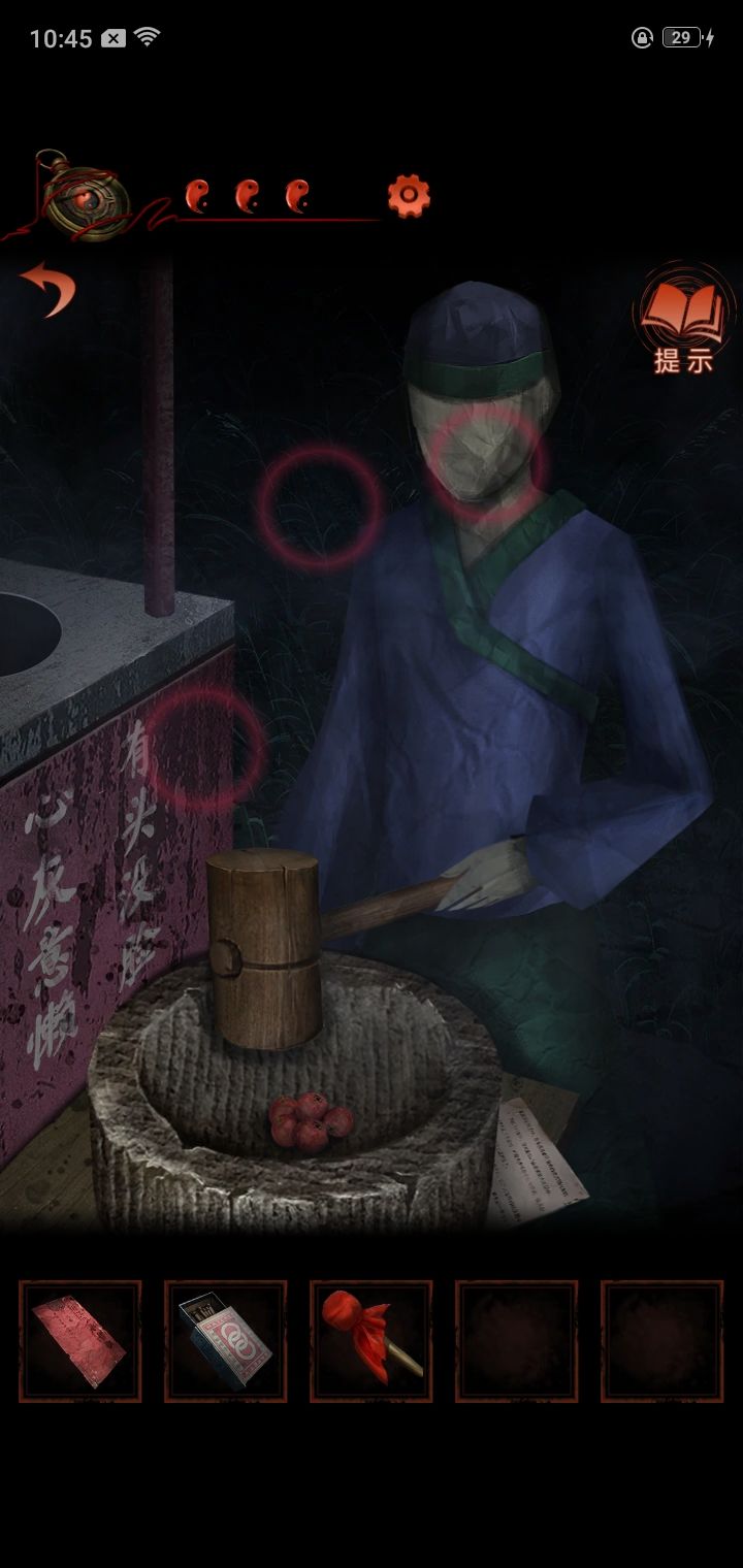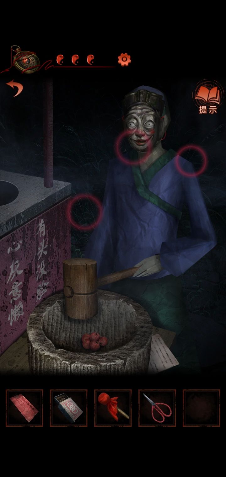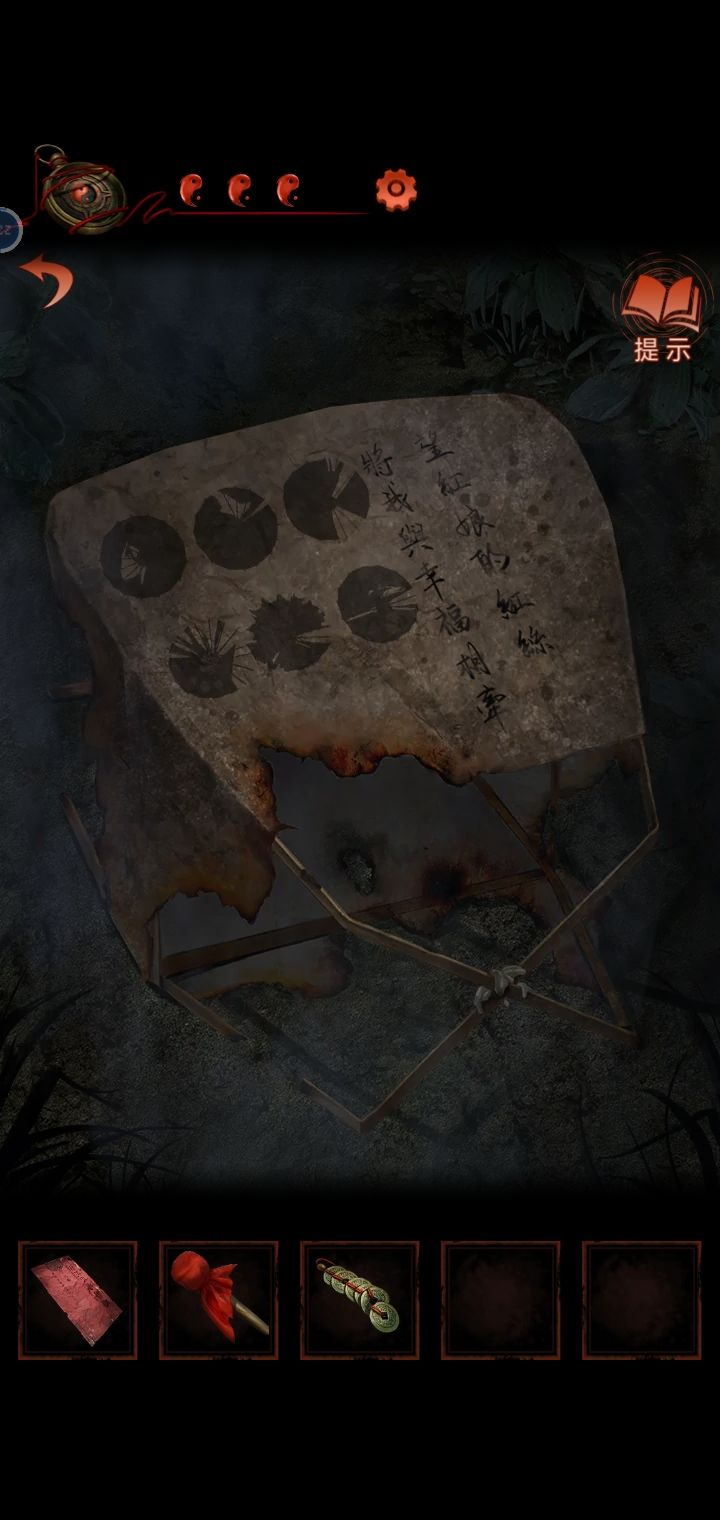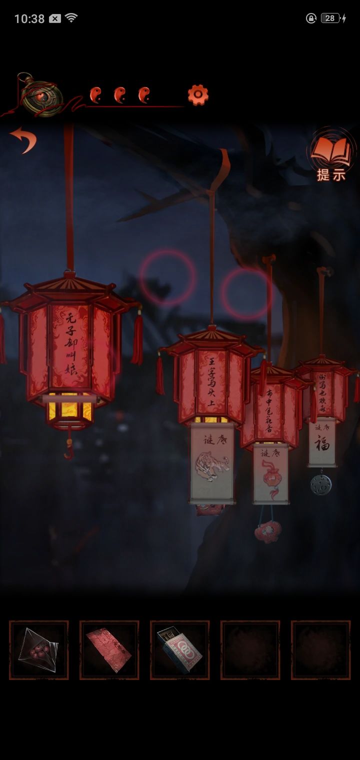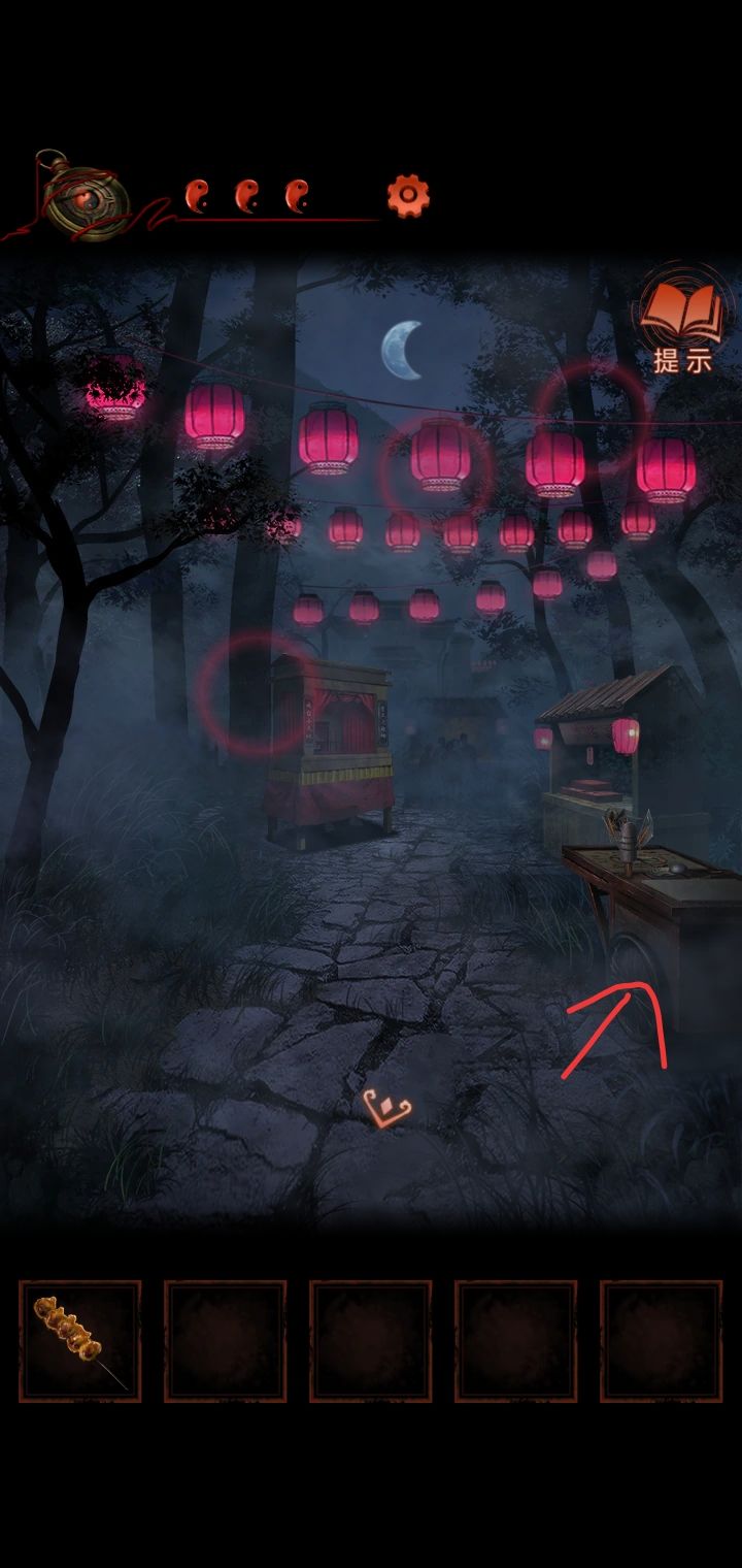 4.猜灯谜,从纸人手里得到锣棒,根据木牌提示敲锣,敲两下转换场景