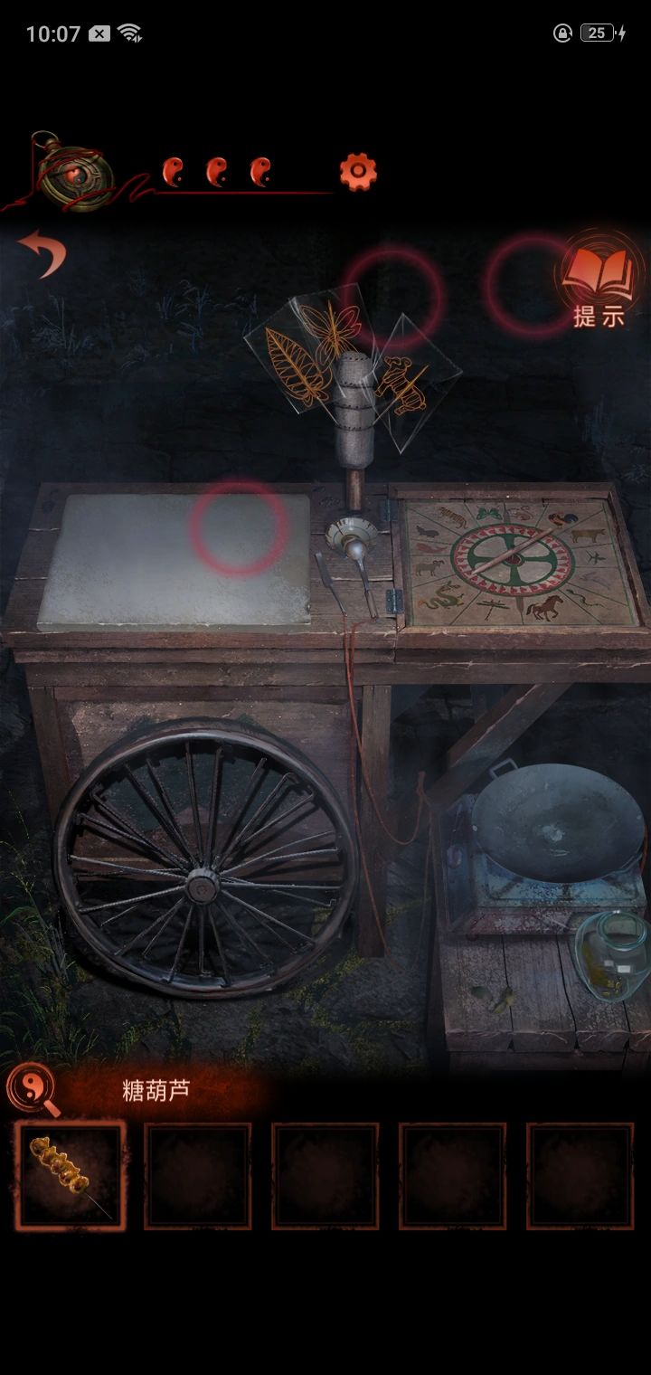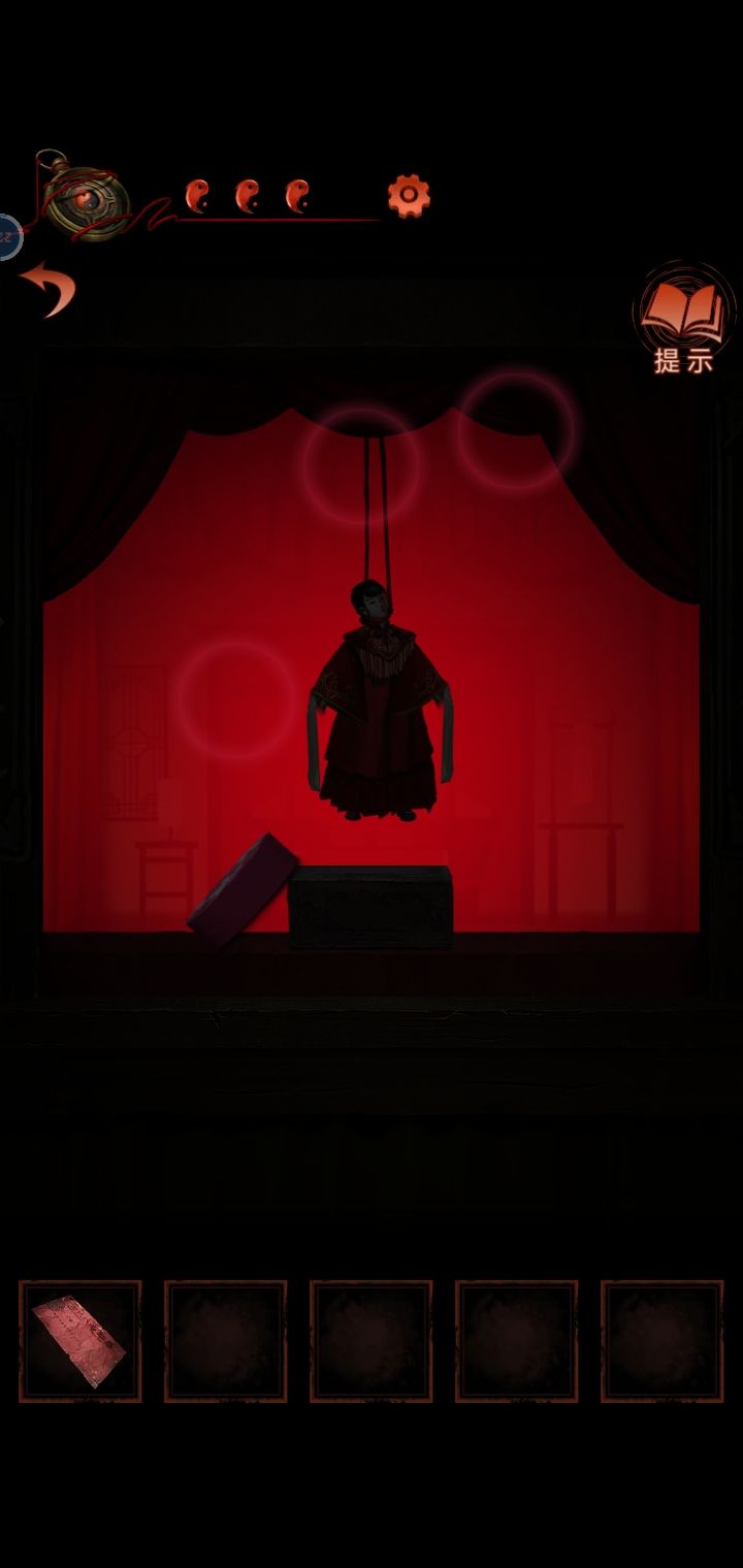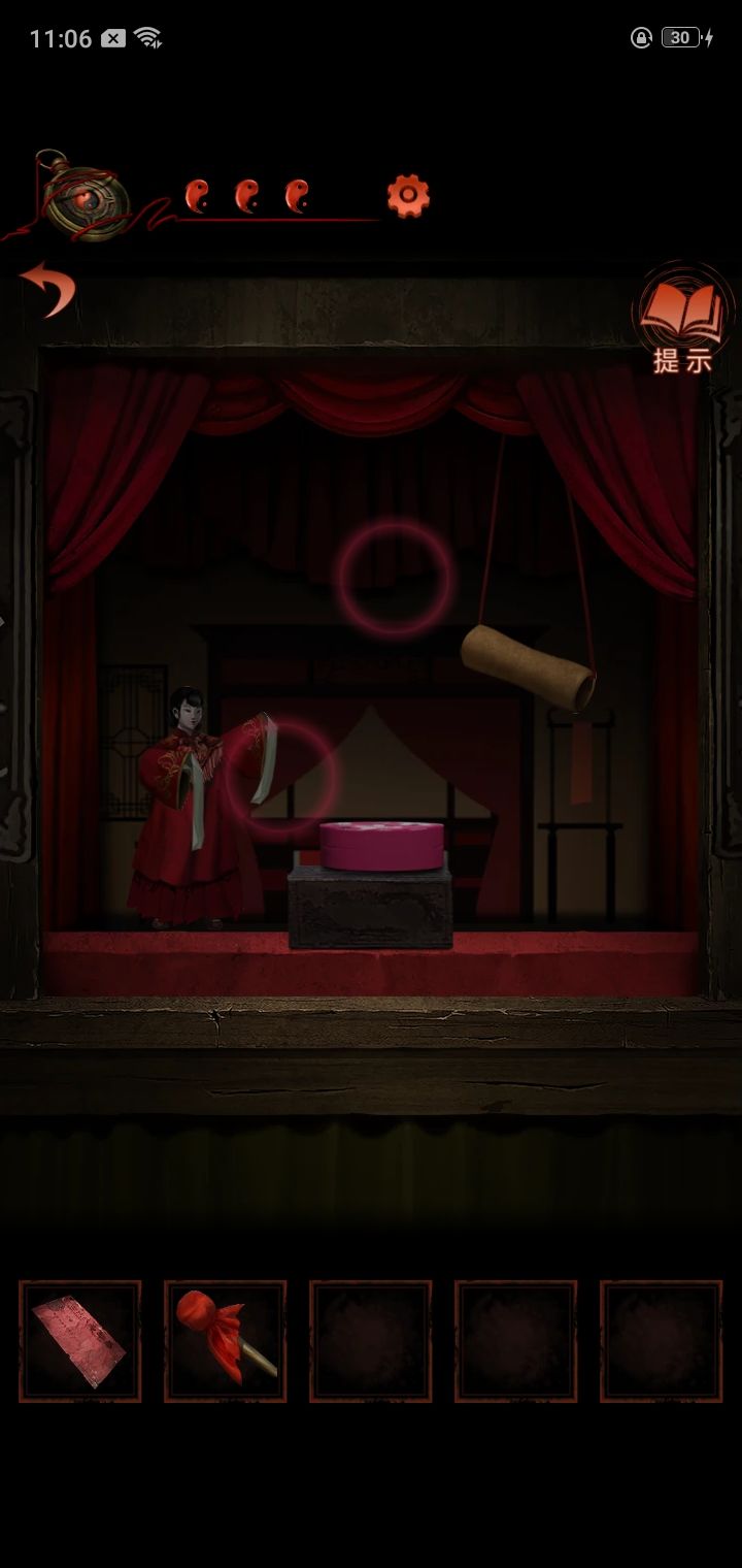 10.敲锣4下回到场景1,把胭脂盒给木偶戏台,得到梆子,给黑无常按上,敲锣-梆子-锣,到第三场景