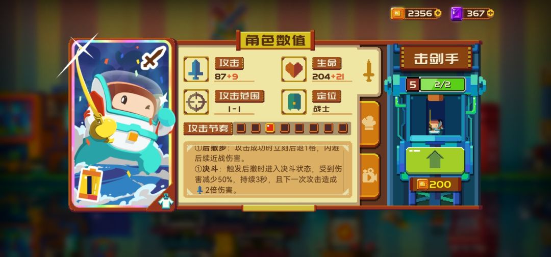 攻击系数x4并附带击退一 低配版的魔影拳正面战斗输出能力极强,但血量较低让其登场率大打折扣而且在对付一下血量略高的远程时也会因为击退一反而浪费自身一回合攻击回合