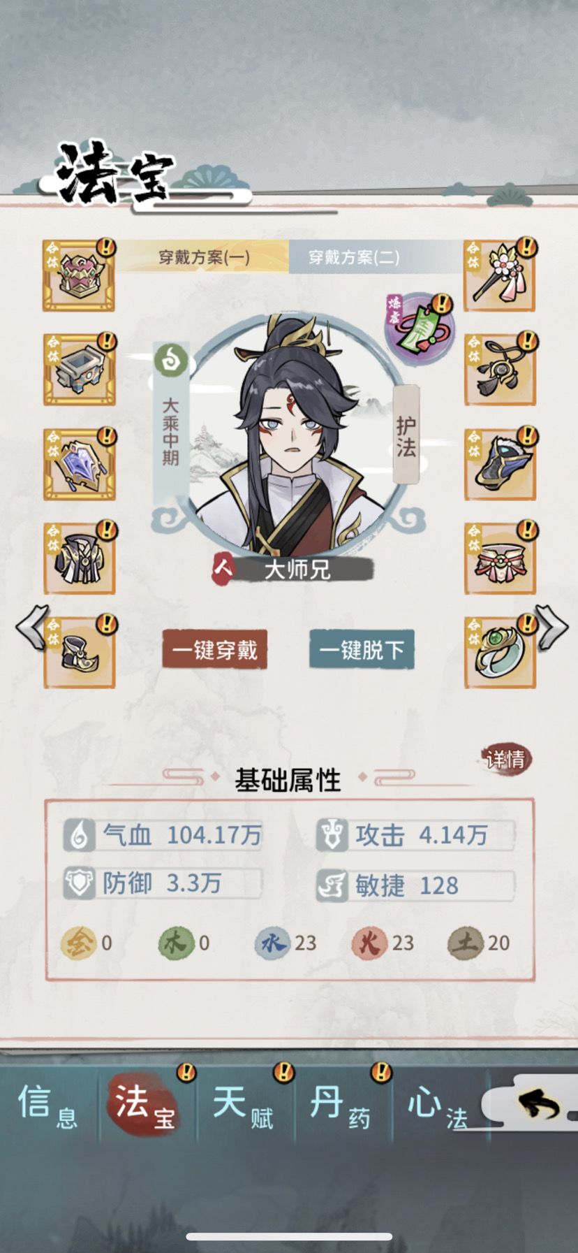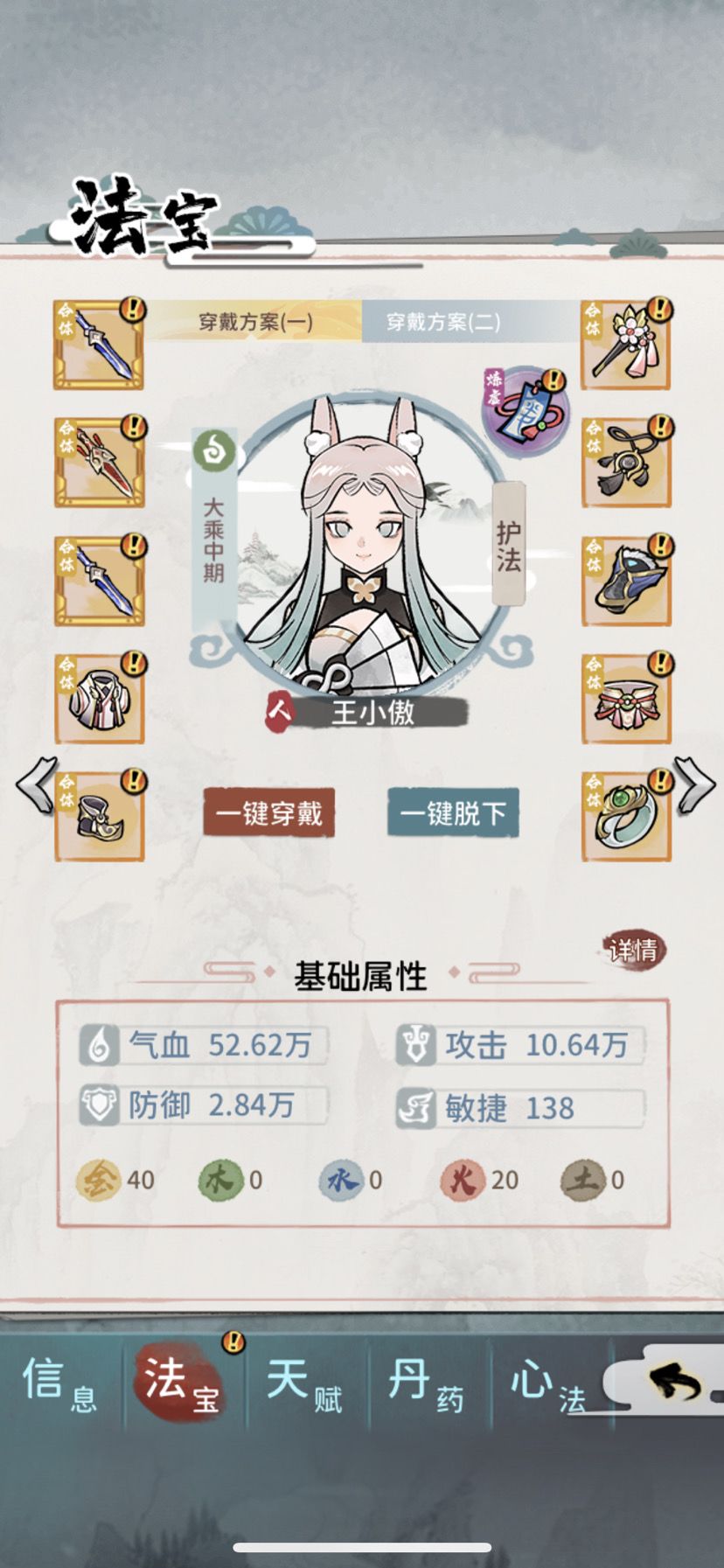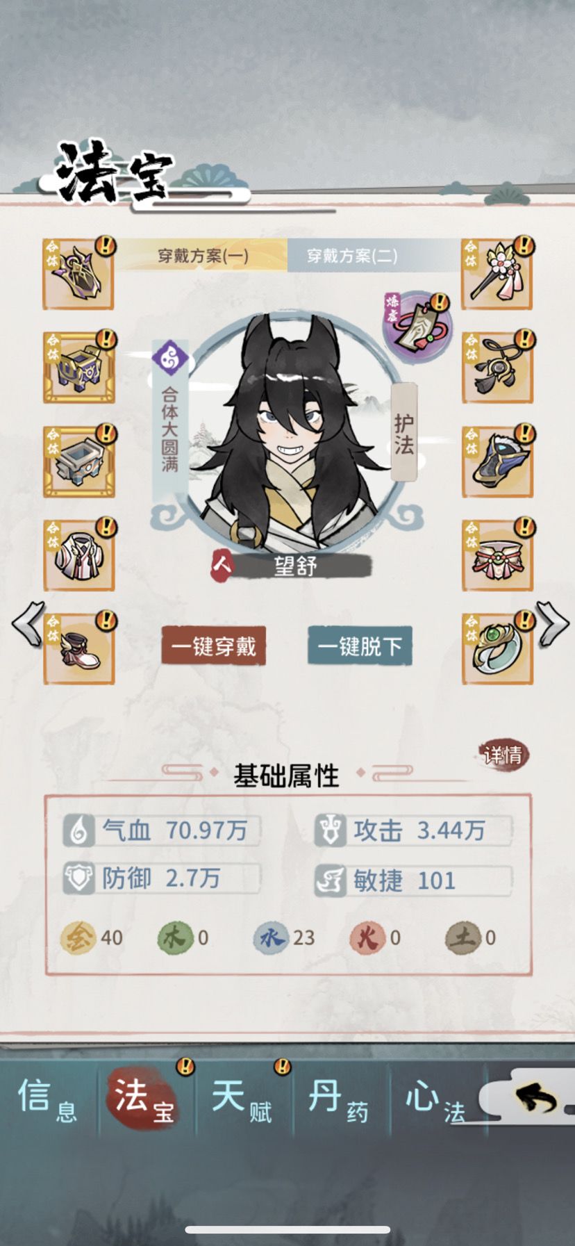 明月不能用,我的掌门和大师姐是刀,邀月是辅肉,临时把望舒秘籍和御宝给邀月,然后弄了三把剑器灵。刷了几本垃圾火剑神通,9剑(金火金)大师兄和忘舒带的血首饰,大师兄90免伤,望舒70。5剑秒主,1剑补小怪伤害。