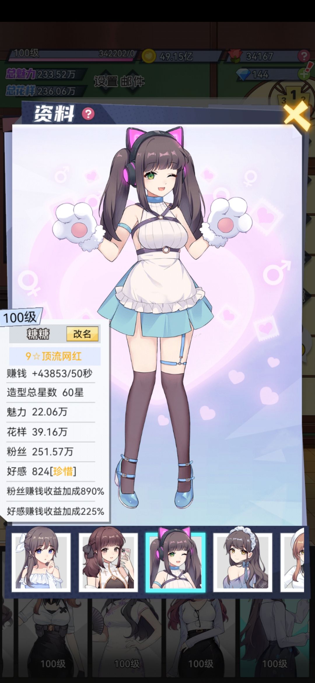 5、好感度先全员培养至450点珍惜,可以达到最高赚钱效率。目前,最高上限已知为珍惜,再往上还没达到上限 。