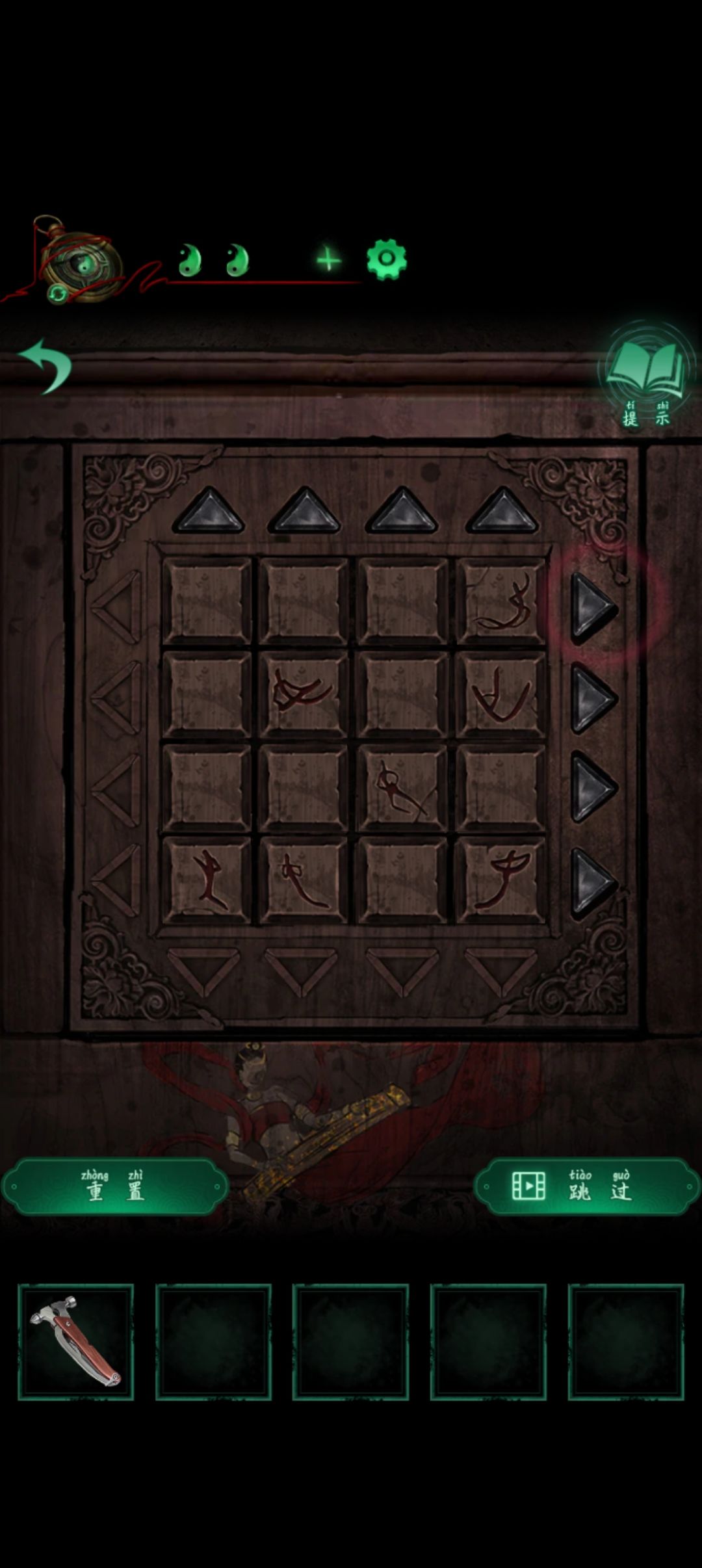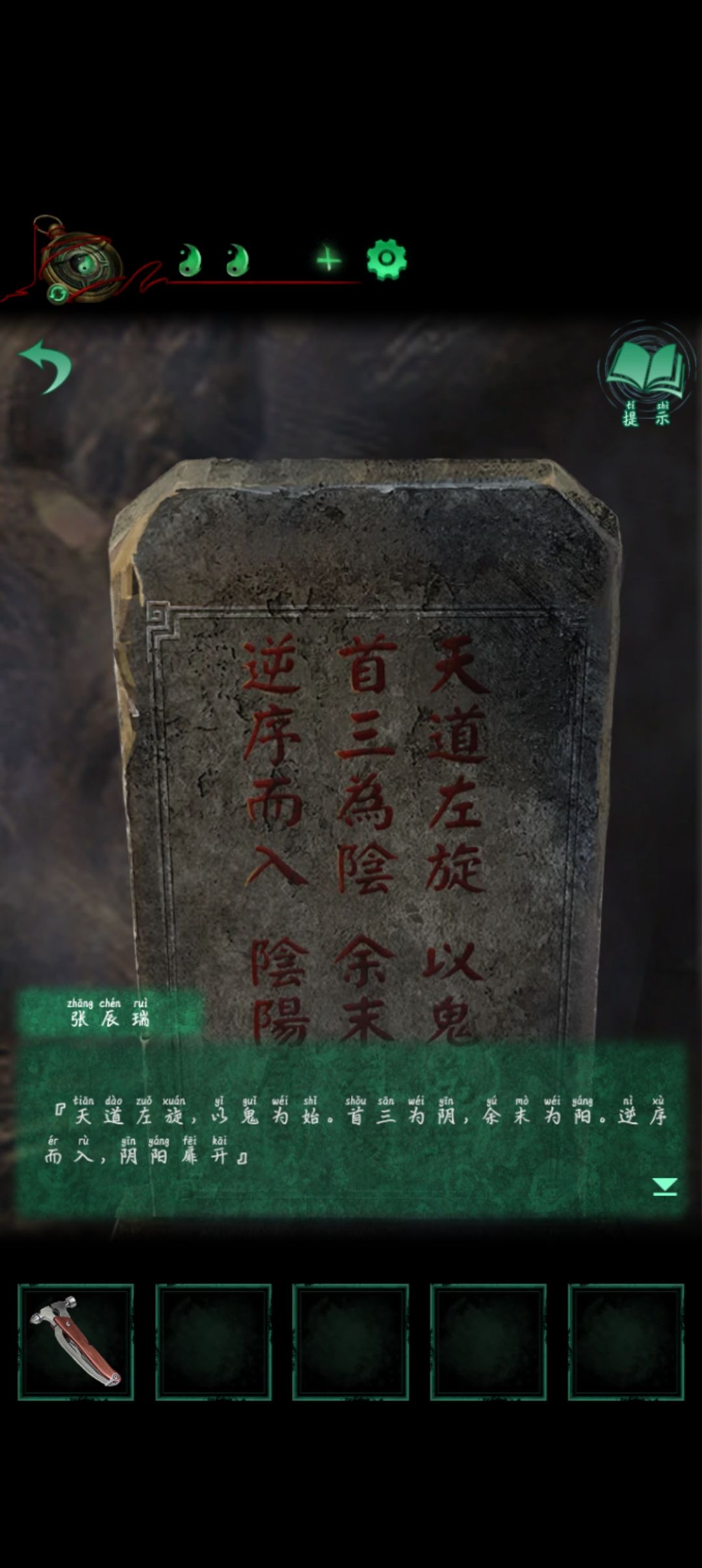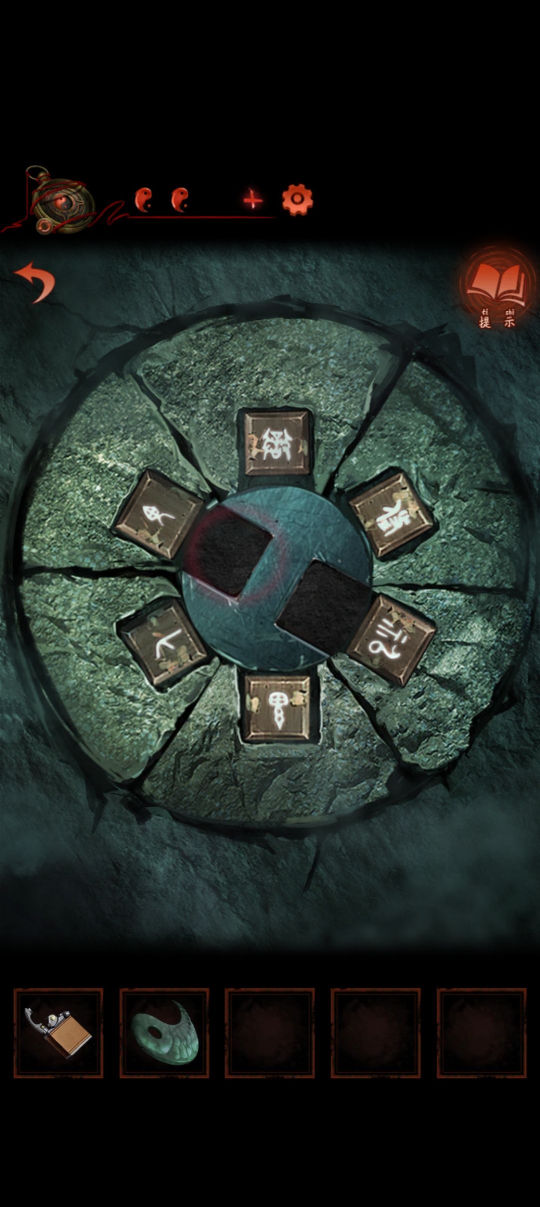 捡起地上掉的牌匾放裂缝处查看石碑根据齿轮从鬼开始向左边转依次是 鬼凡神坤宙乾