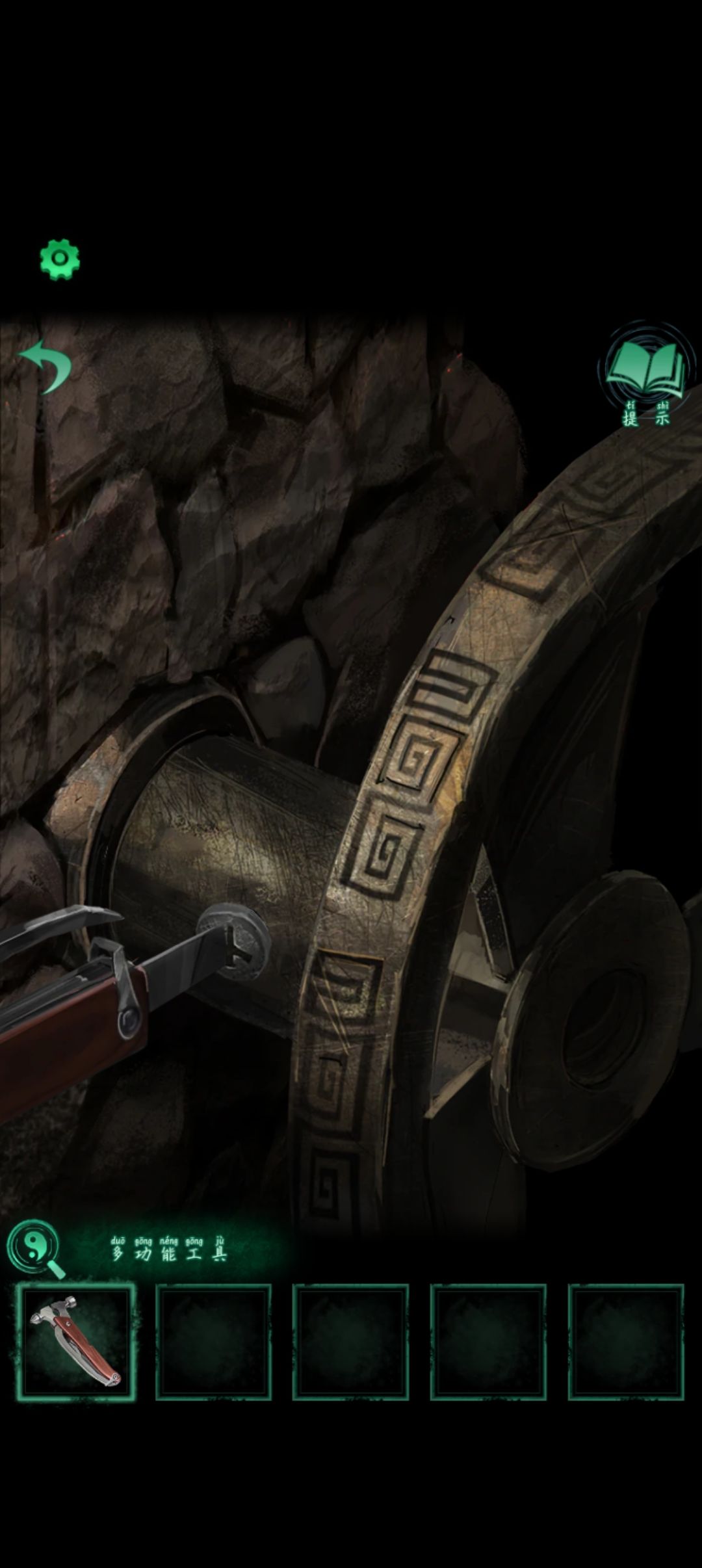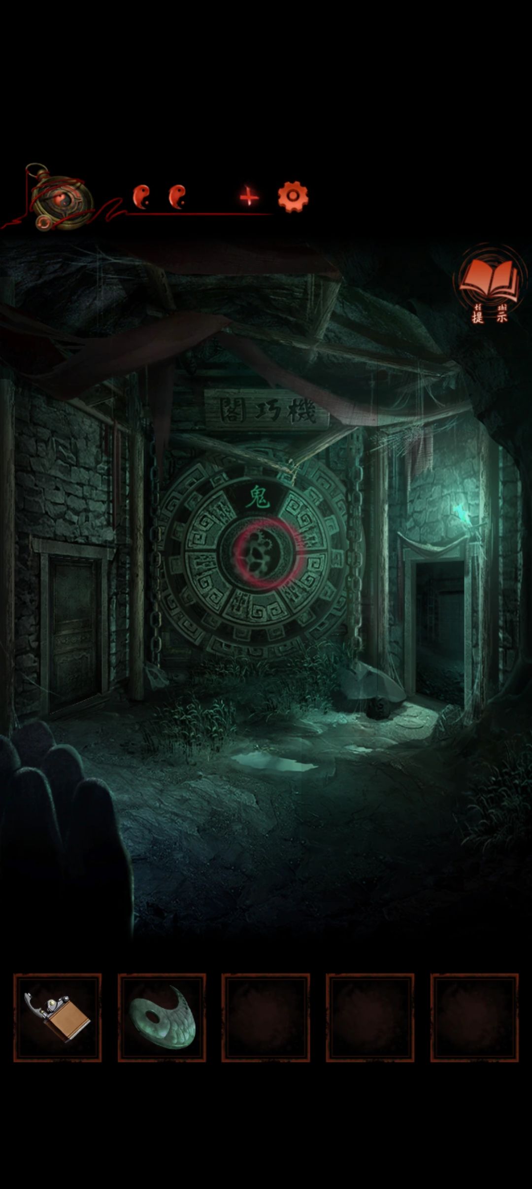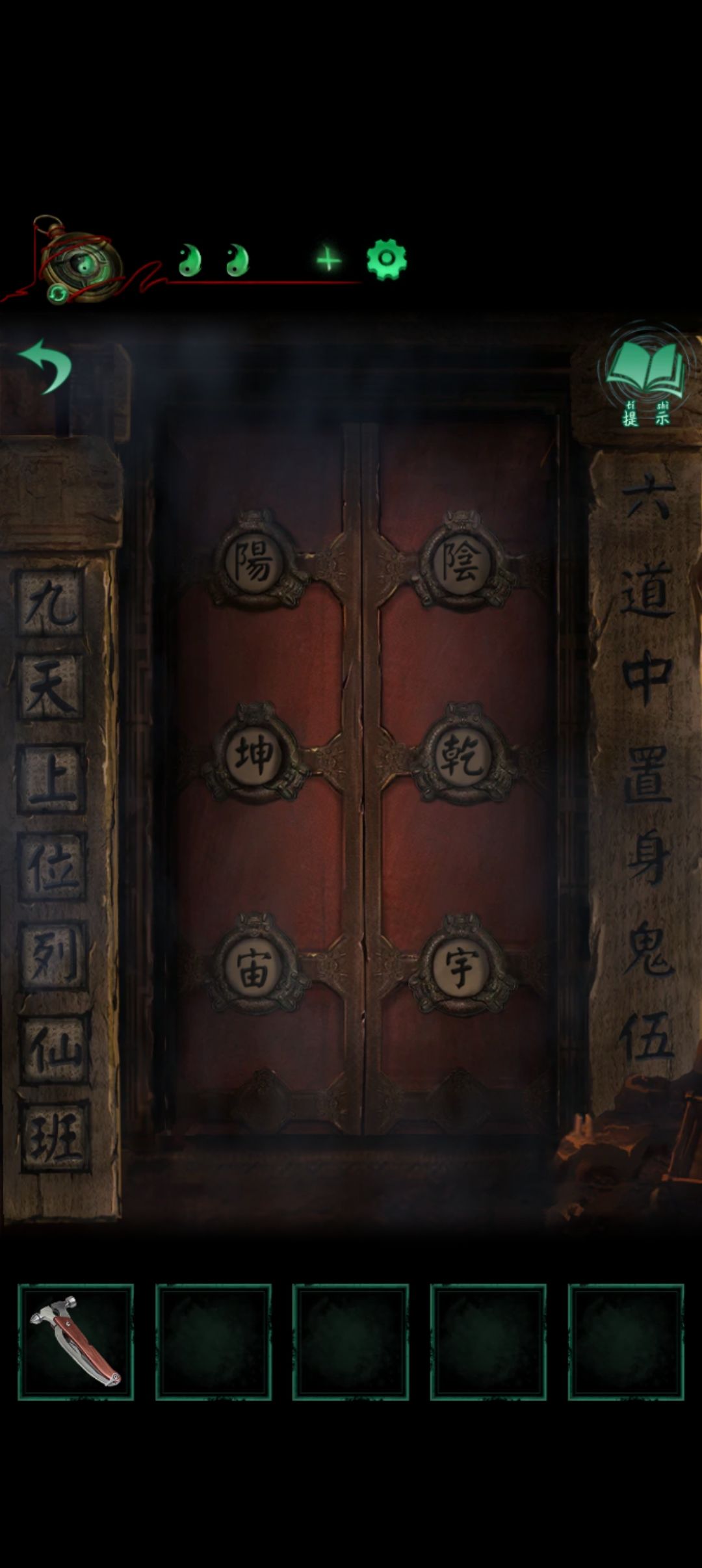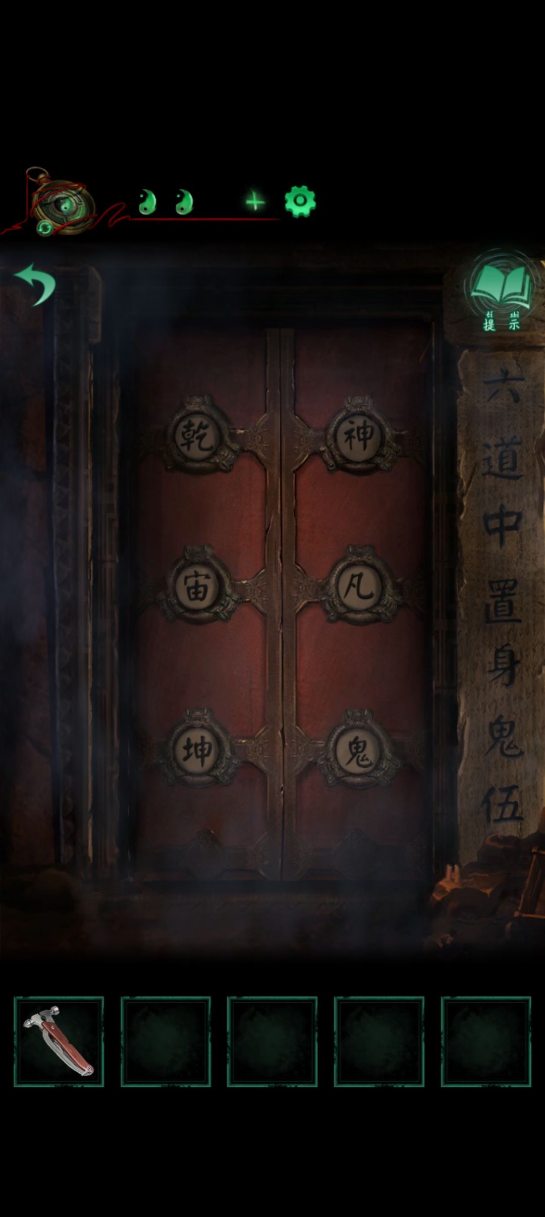 近左边的门将齿轮放上去齿轮转动出现 鬼乾宙坤神凡六字