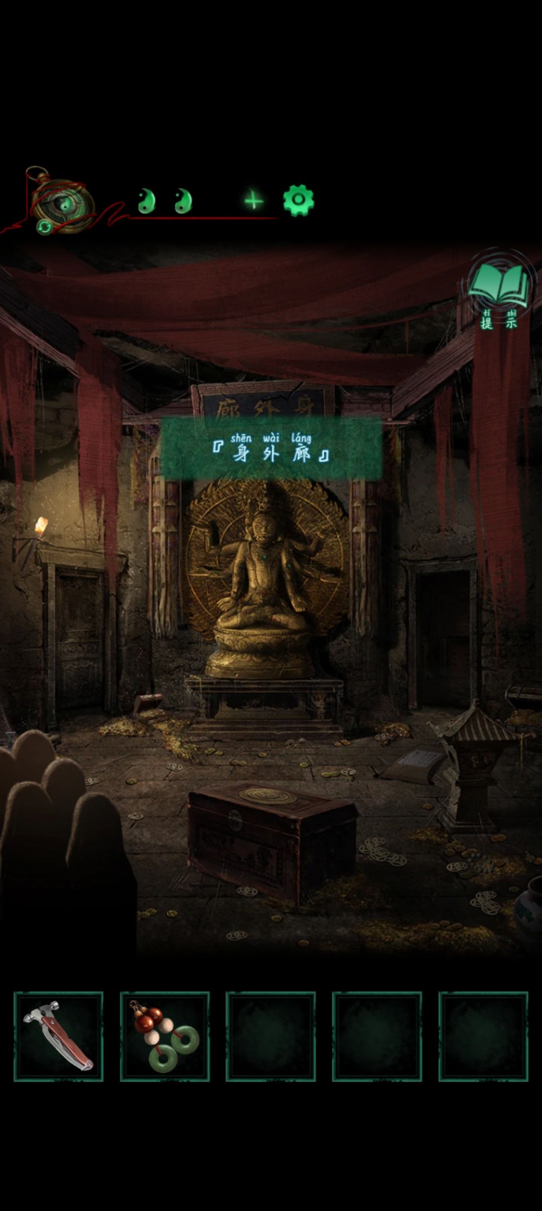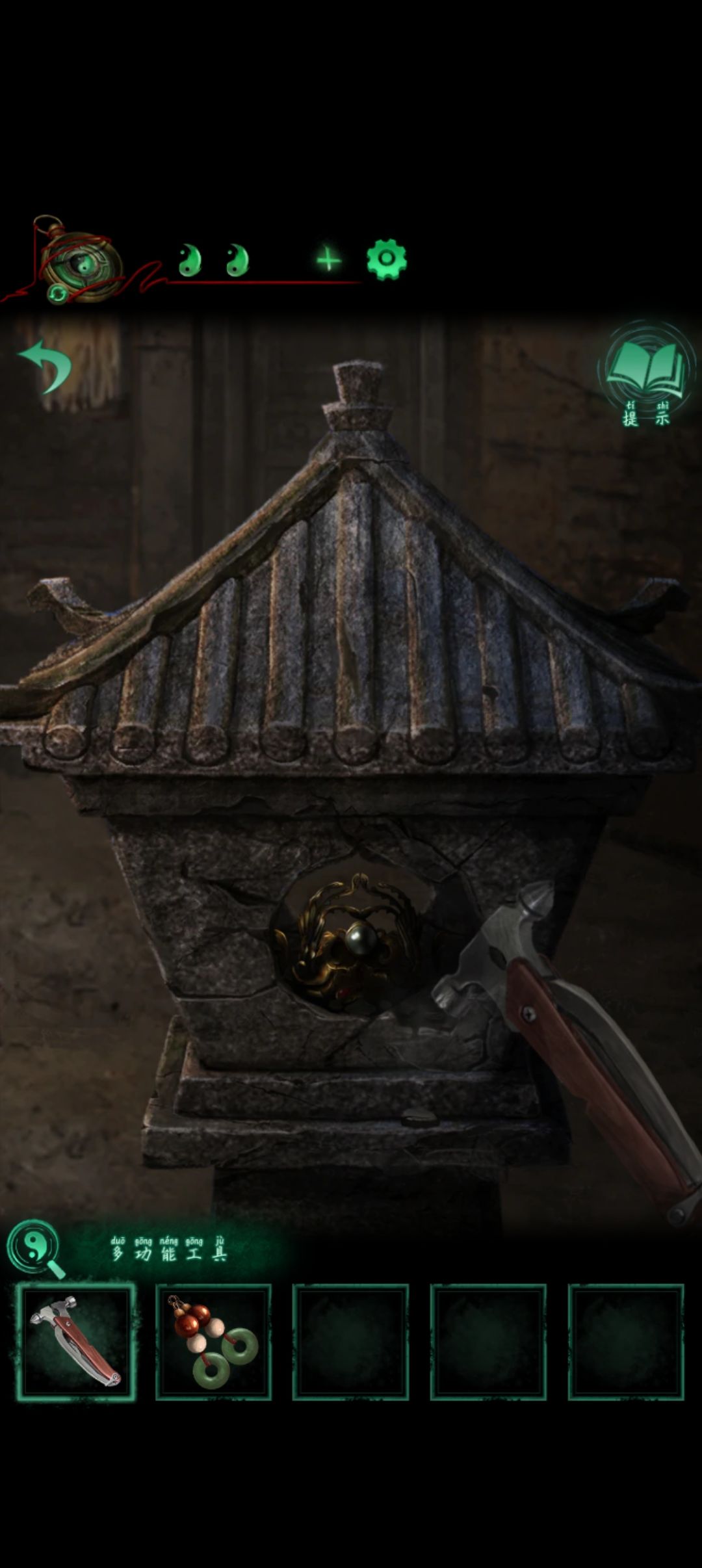 回到男方向左进门到身外廊用锤子砸石灯