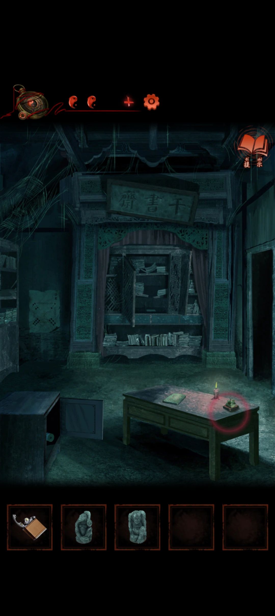 进里面千书斋将雕像放到柜子上得到线索