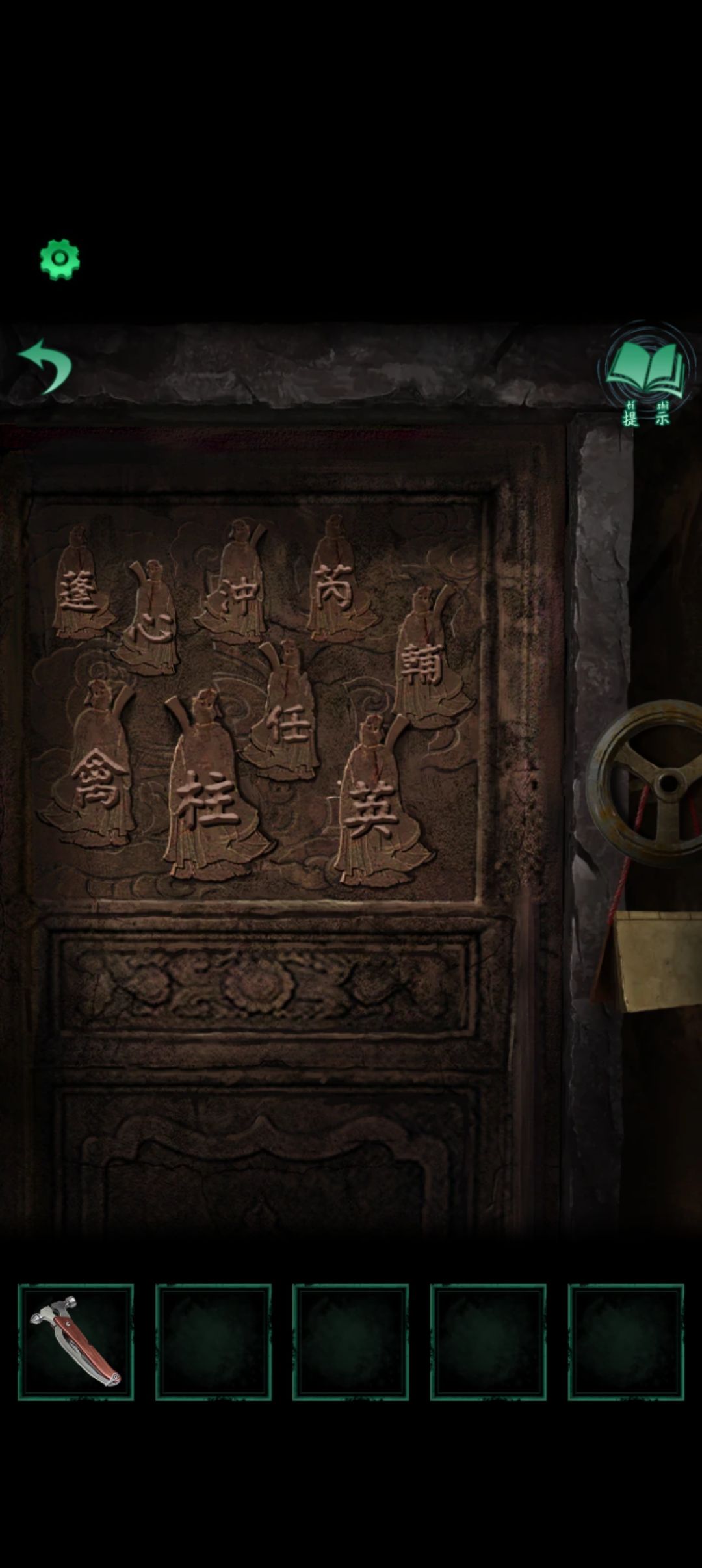 走进暗门将左边转轮拆掉走到最外面浮雕处放上转轮