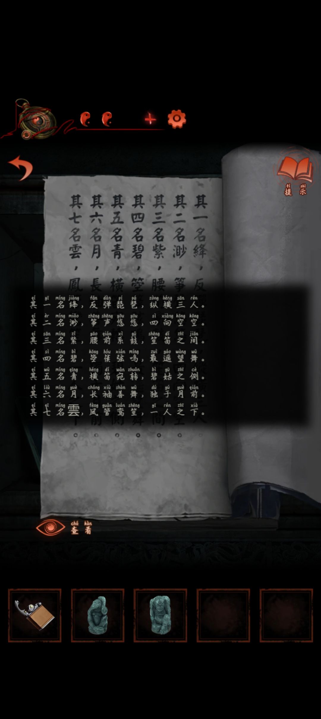拿着阴阳鱼去齿轮的屋子放石柱上然后点阴阳鱼开左边石门进到千书斋
