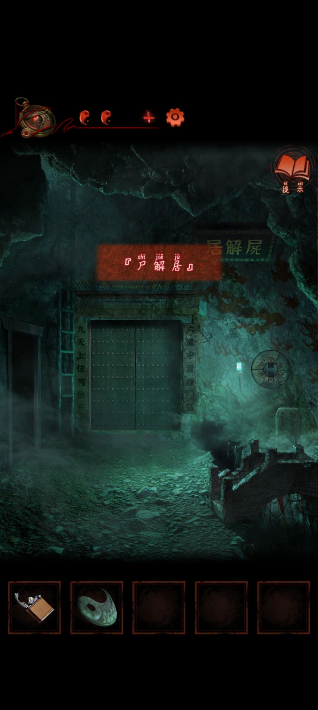 先看尸解居(女)右边石碑拿半块阴阳鱼