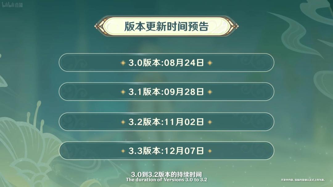 2.9版本号不存在,直接跳到3.0版本。在3.0版本开始我们将会迎来新的主城大区域须弥,在直播中大伟哥带来大量的新内容爆料可谓十分丰富了,让我们一起来看看吧~