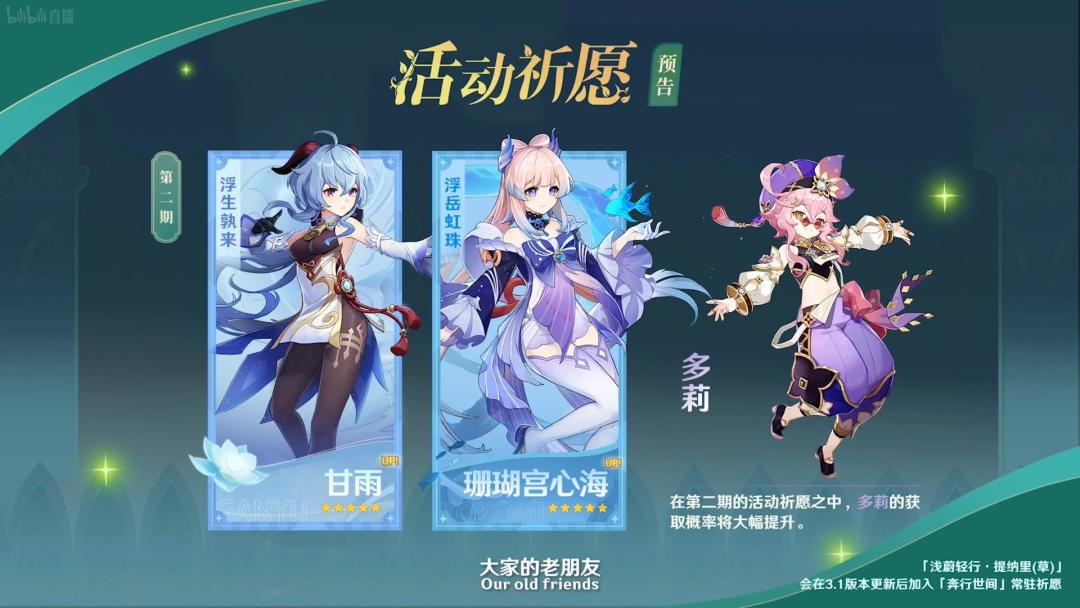 第二期:5星up:甘雨复刻、心海复刻 4星up:多莉