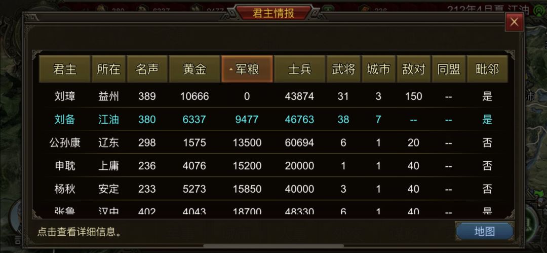 但是5月份,刘彰失去成都后居然还能买2万5的粮食………不过,他只要4万多兵了。后面也简单了,自己打,或者孙曹都可以。