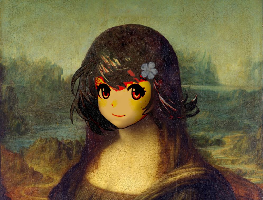 一直很在意,所以就不断尝试,p了一天了,相对应该不会再修改了,原贴一直在修改一直在换图,最终作品不发出来氵一下可惜了,整体来说如果有油画原图会效果更好,脸部我不忍心添加裂纹,单纯氵贴,大家图个乐看就好