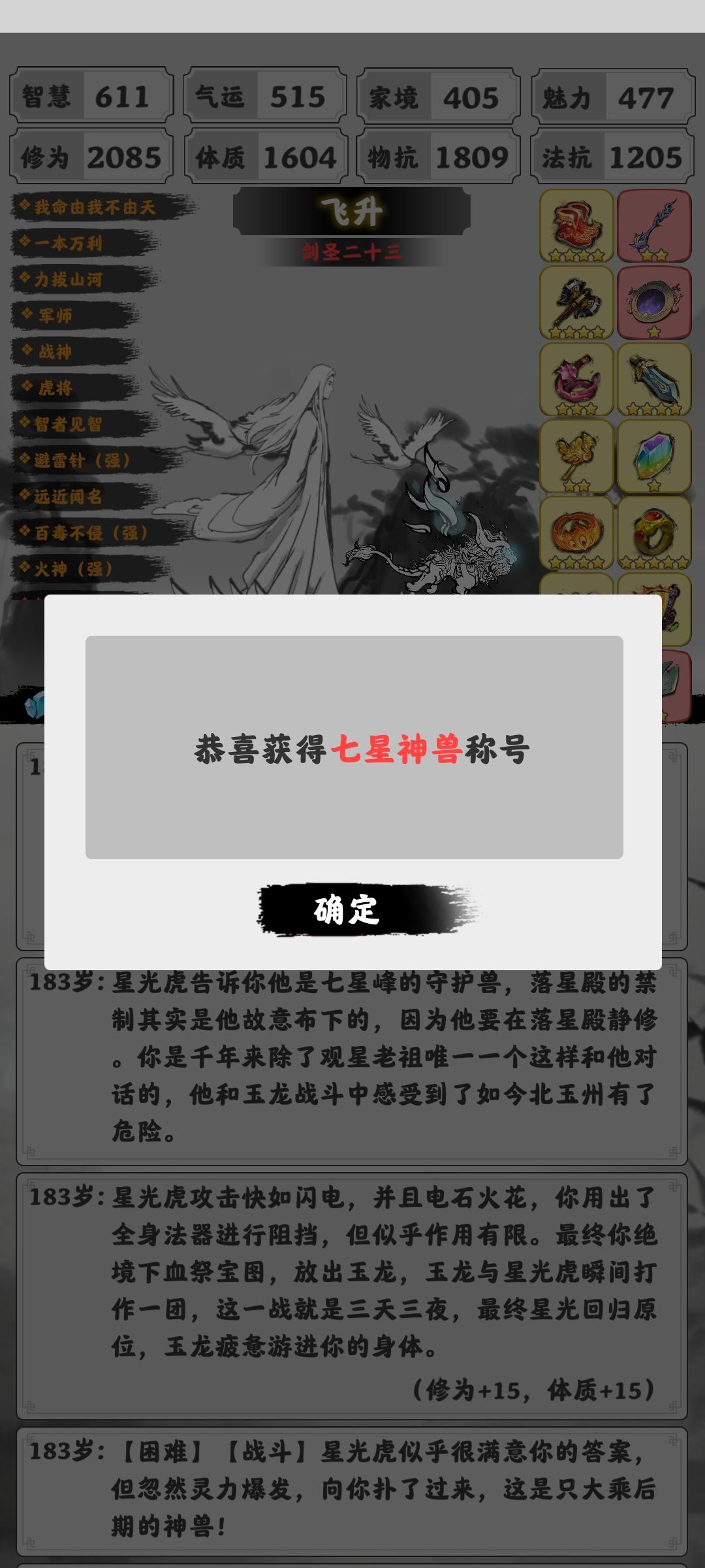 自由麒麟,璇儿(5),剑23,智15,气15,家30,魅力10,体质10,家境靴
