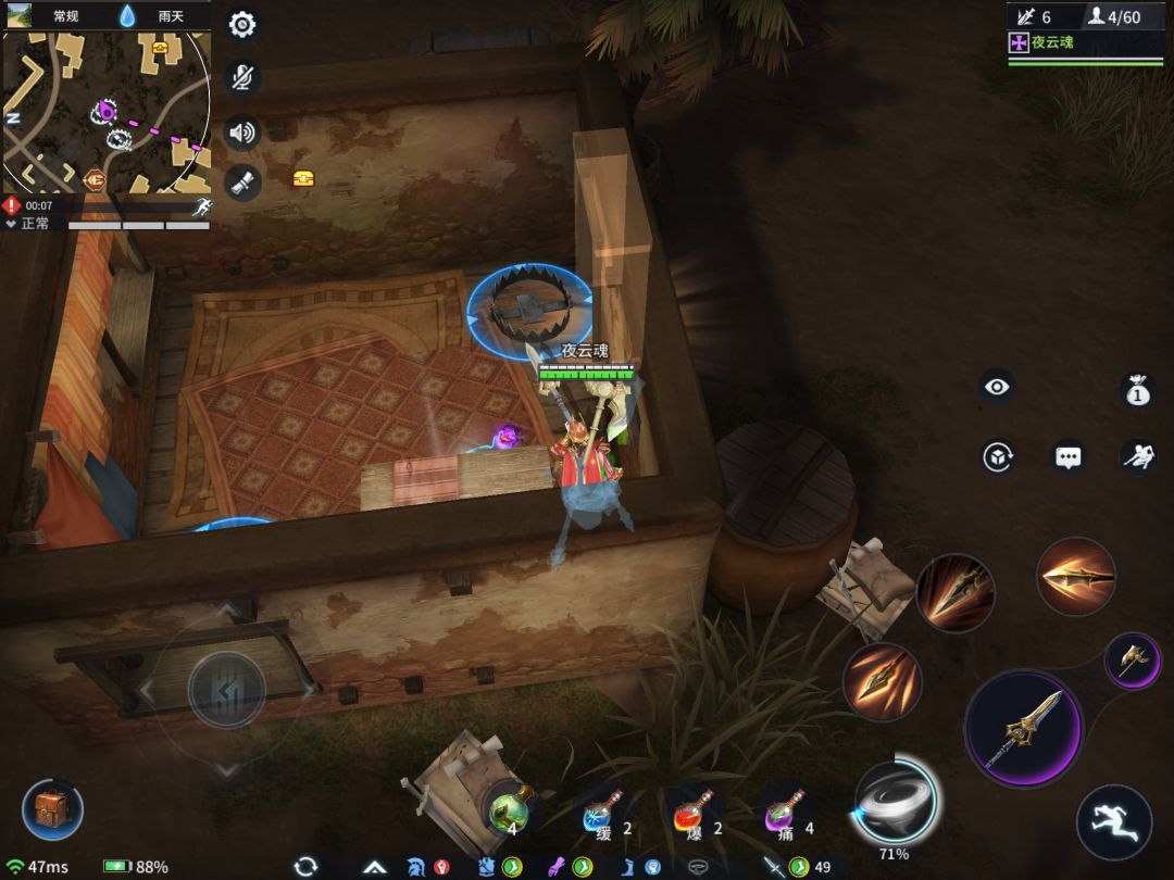 技巧:枪的爆发性特别强,如果有斧头或大锤过来可以利用一击能无限击退(可以打断施法)一技能效果结束后补上二和大应该能打残,这个时候随便打下就行。注意:决赛圈玩枪的话一定不要乱突,因为一不小心突到毒圈外或被火药炸飞,那就很容易死了,玩枪一定要阴一点,带匕首的话可以去夺旗。