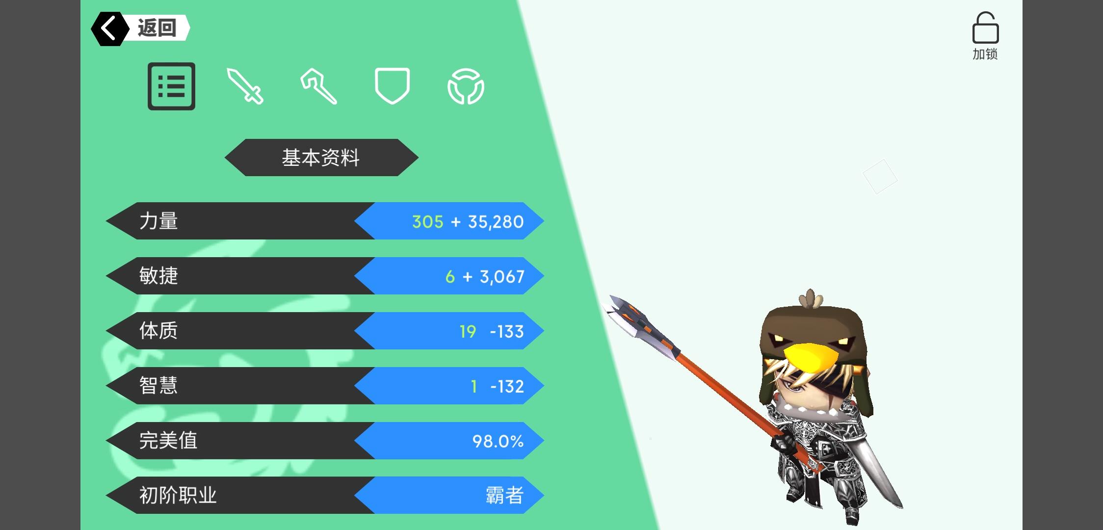 无基白虎,已加好点,可2.1力1.3敏