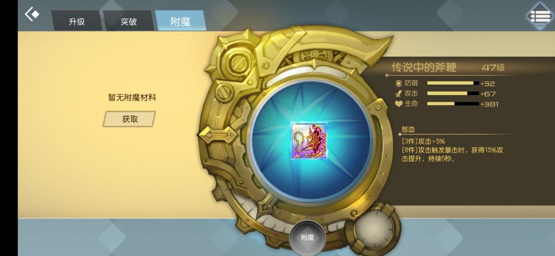 而高级附魔在攻击达到80的情况下还有一段条没满