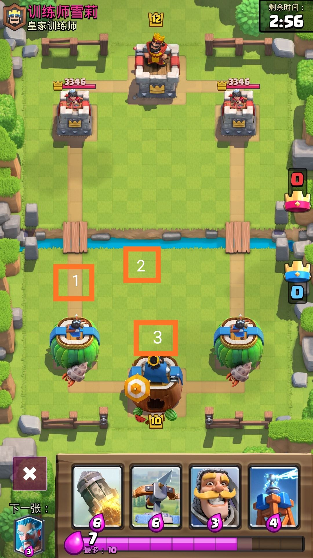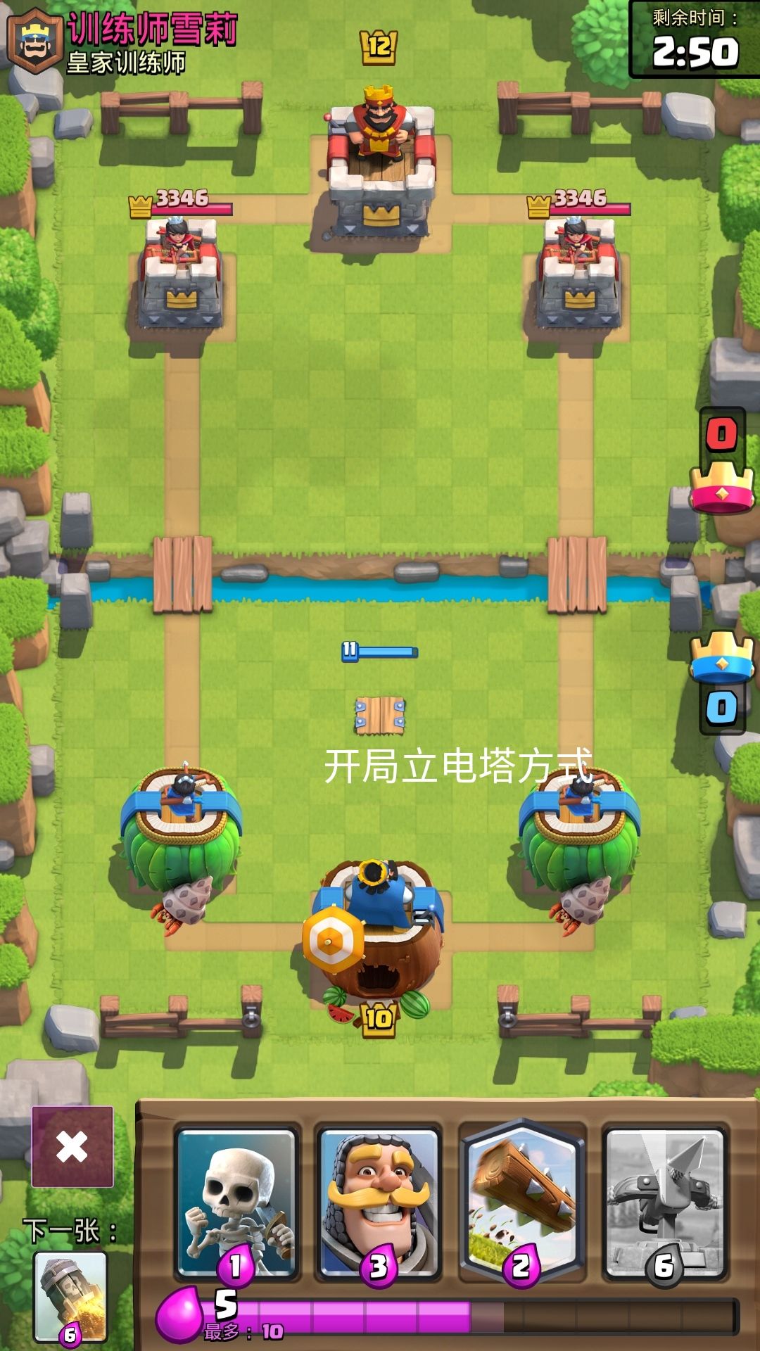 小骷髅:这个要说真的可以说相当久。过牌。解各种中费单体近战(小皮卡,刺客),解单独过河的远程。吃大皮卡三刀,吃王子冲锋。如果想看小骷髅的妙用可以去看速猪玩家的视频(因为冰弩视频太少😂)开局过牌放在塔后。