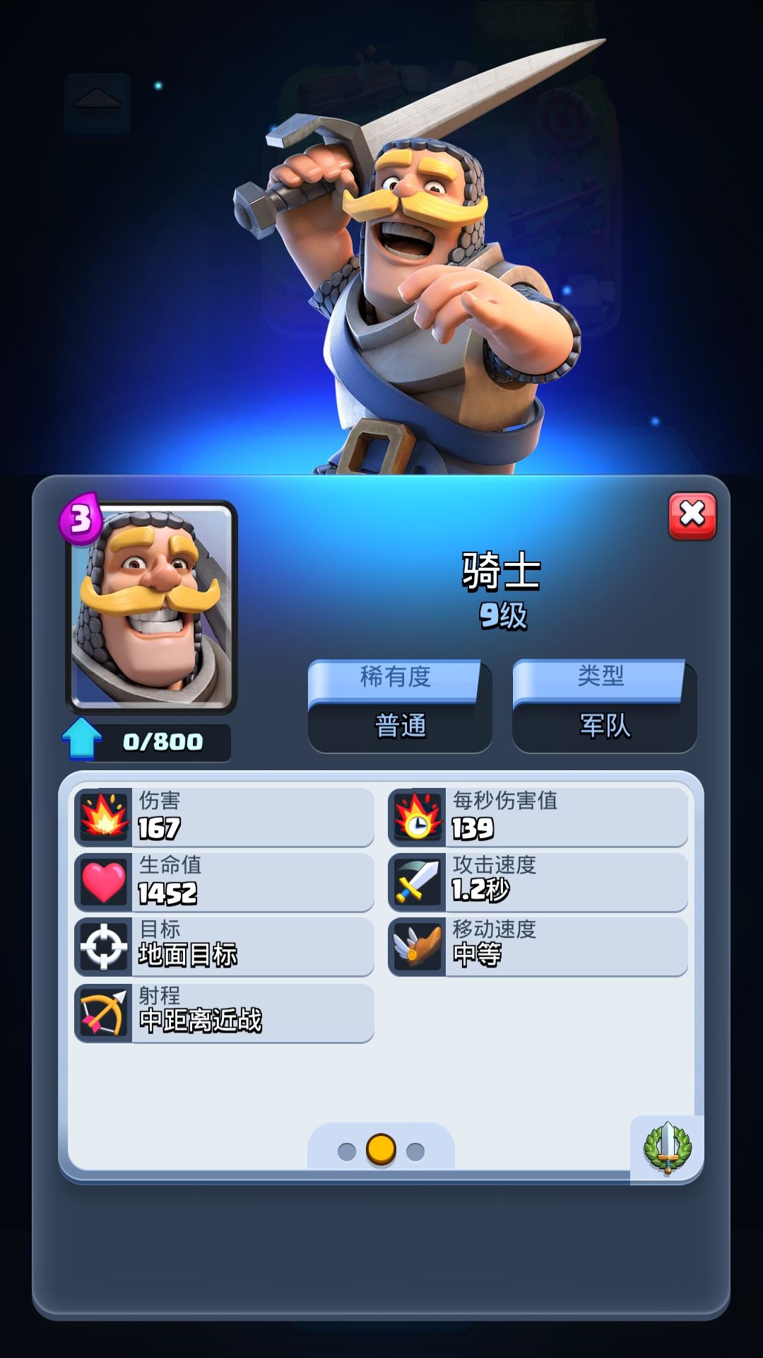 骑士:己方半场无敌の男人。己方半场的骑士可以单杀同级超骑。比起他的费用相当高的血量,性价比不错的伤害。缺点是中移速,单体伤害导致的进攻不利。然而这一点在防守时完全不是问题。