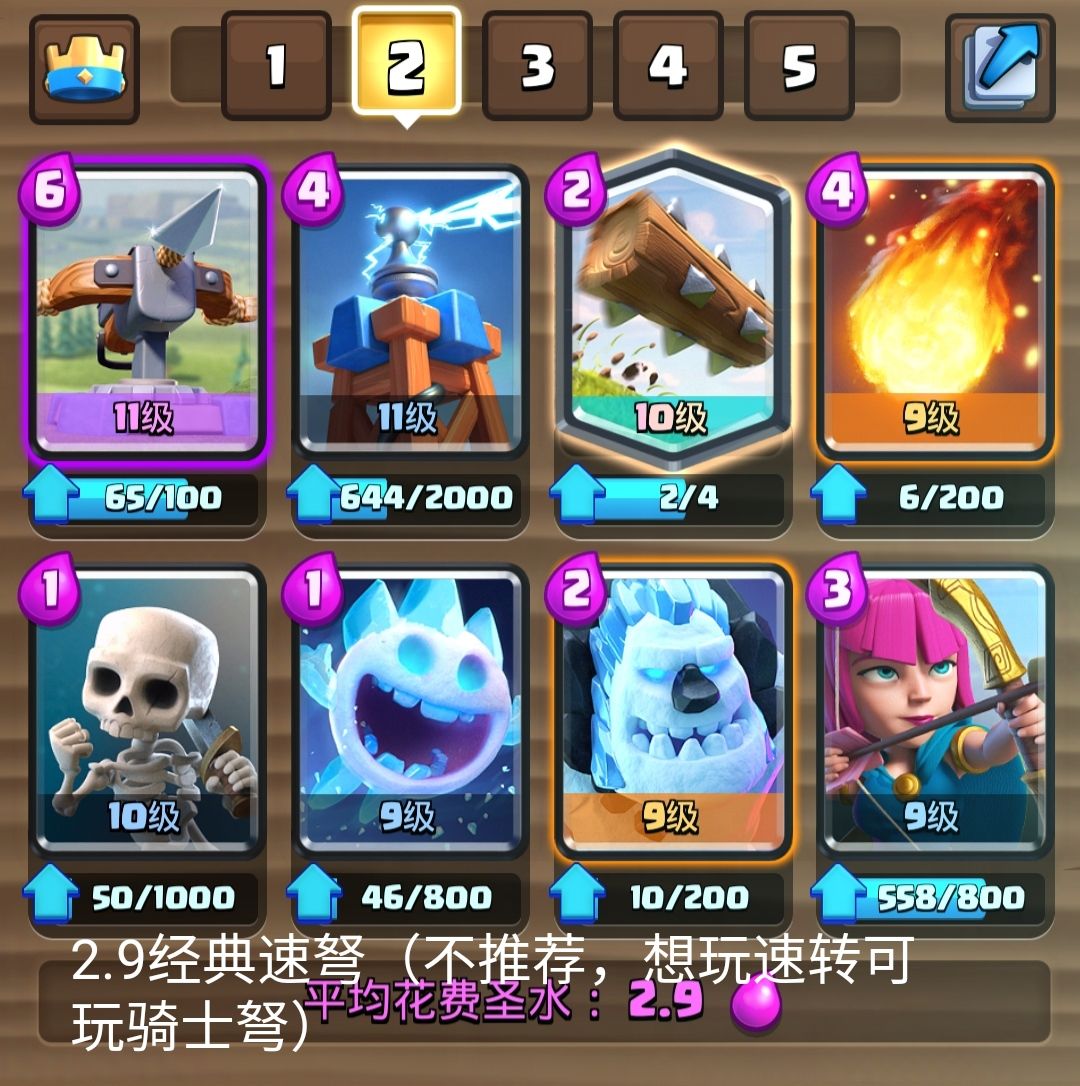 当前版本弩卡组有4种,经典2.9速弩(几近淘汰,冰人与弩的相性太差了)