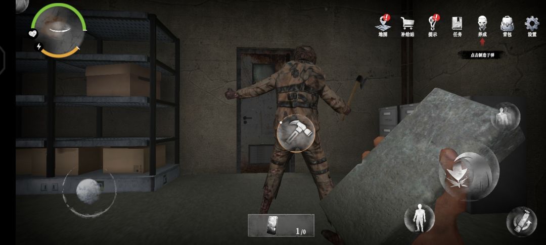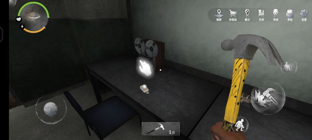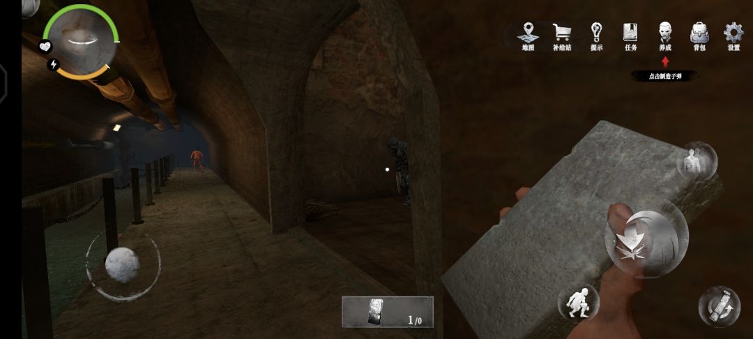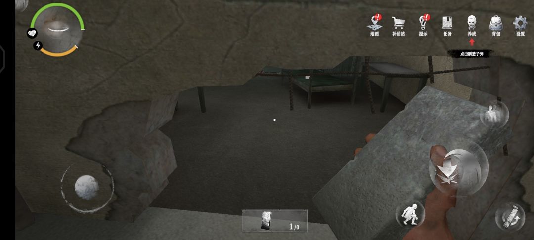 16.在隔壁的房间,我们可以在床上拿到5发手枪子弹,建议拿起一块砖头作备用
