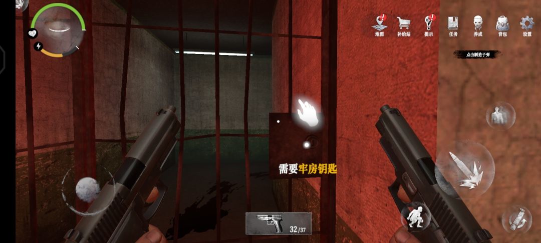 20.蹲下进入临时牢房1,在左手边可以拿到5发手枪子弹