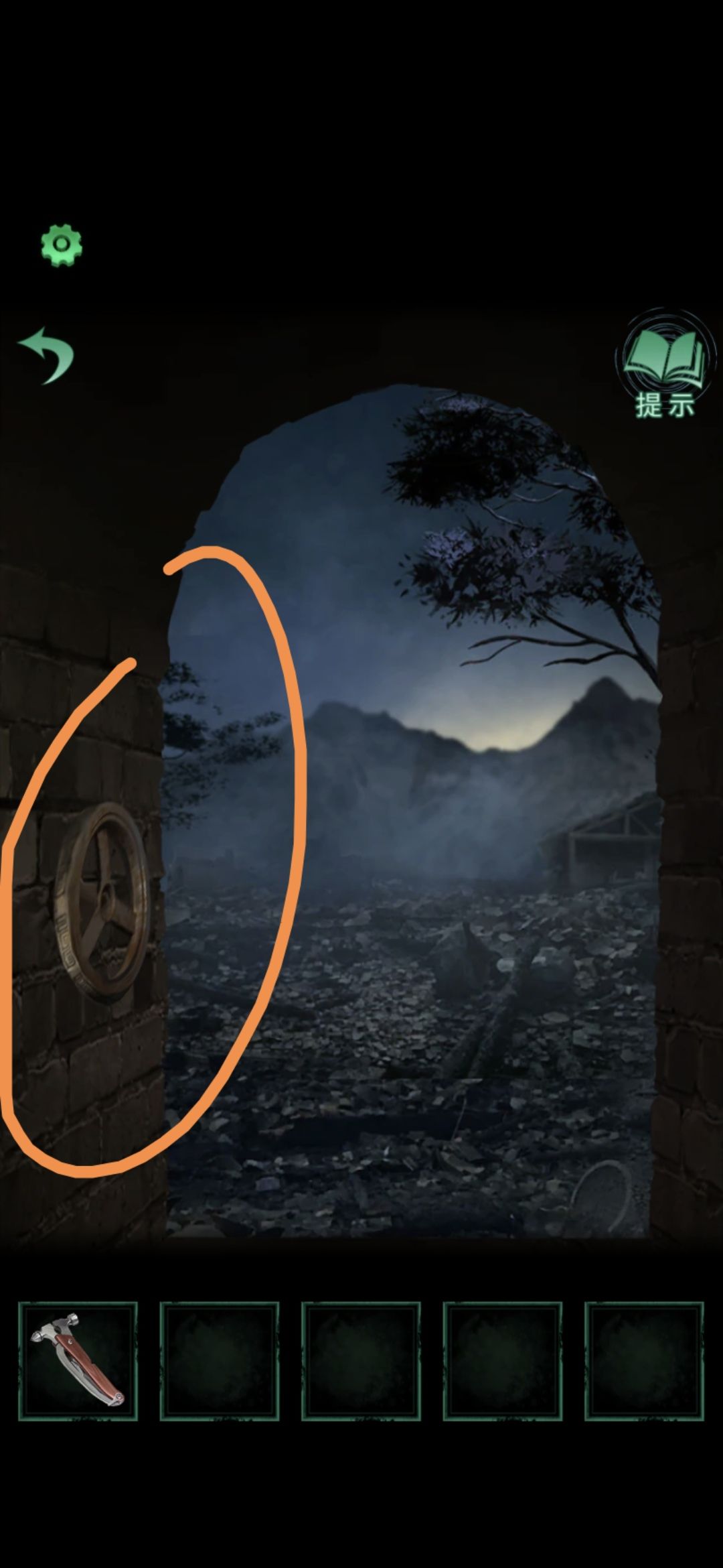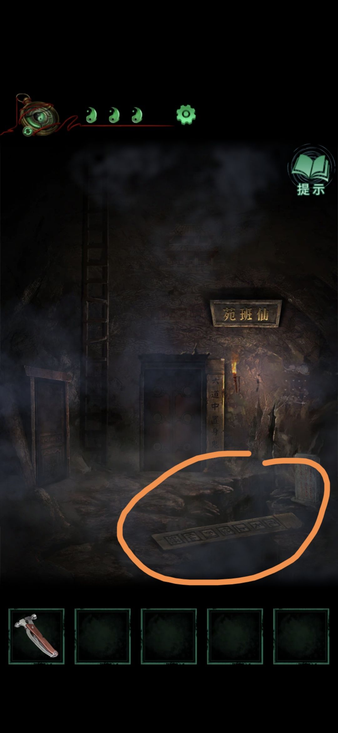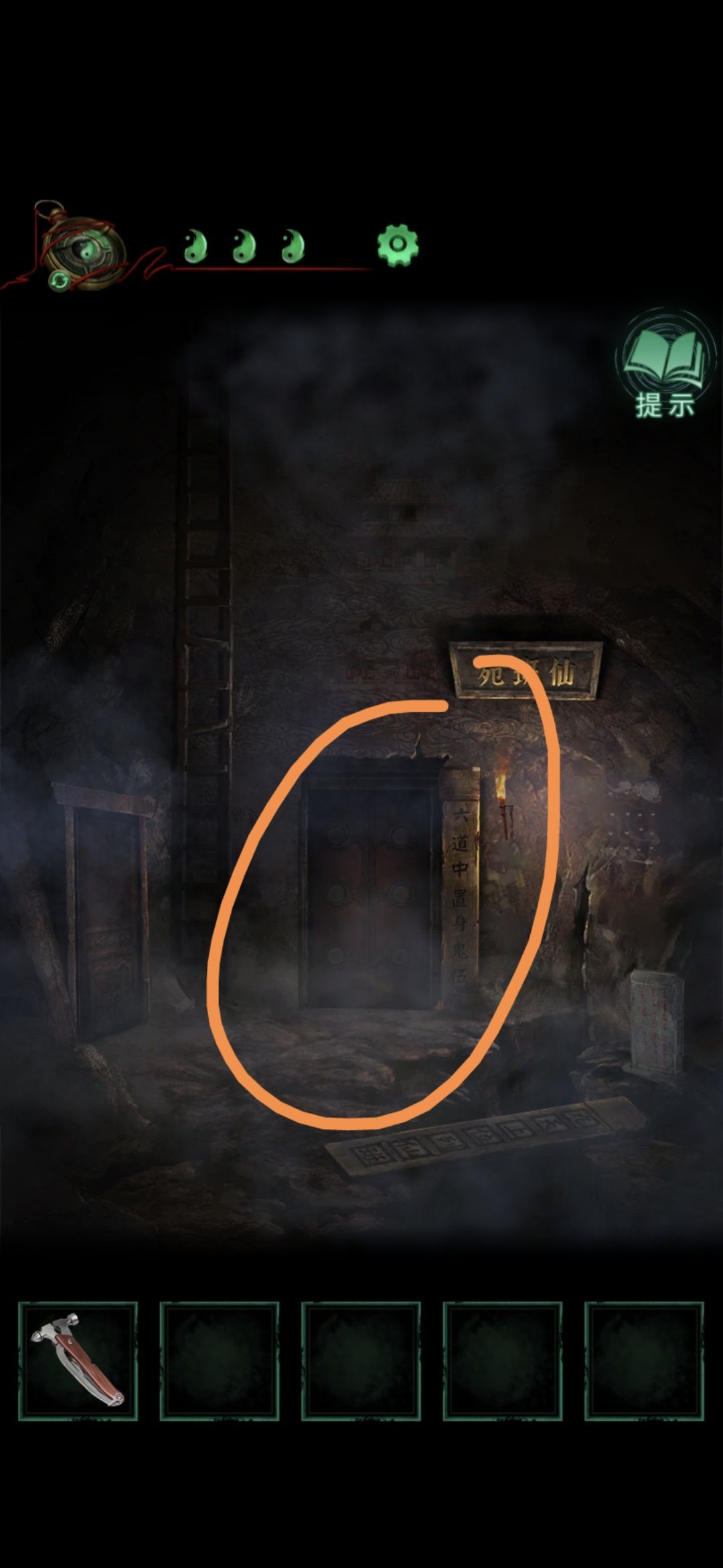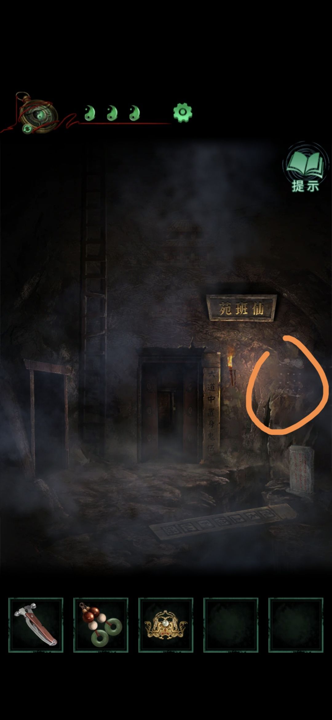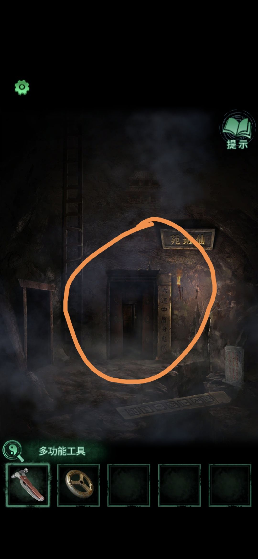 回到仙班苑,点击中间的门,将手轮拧在右边的口上,再点击一下,暗门打开